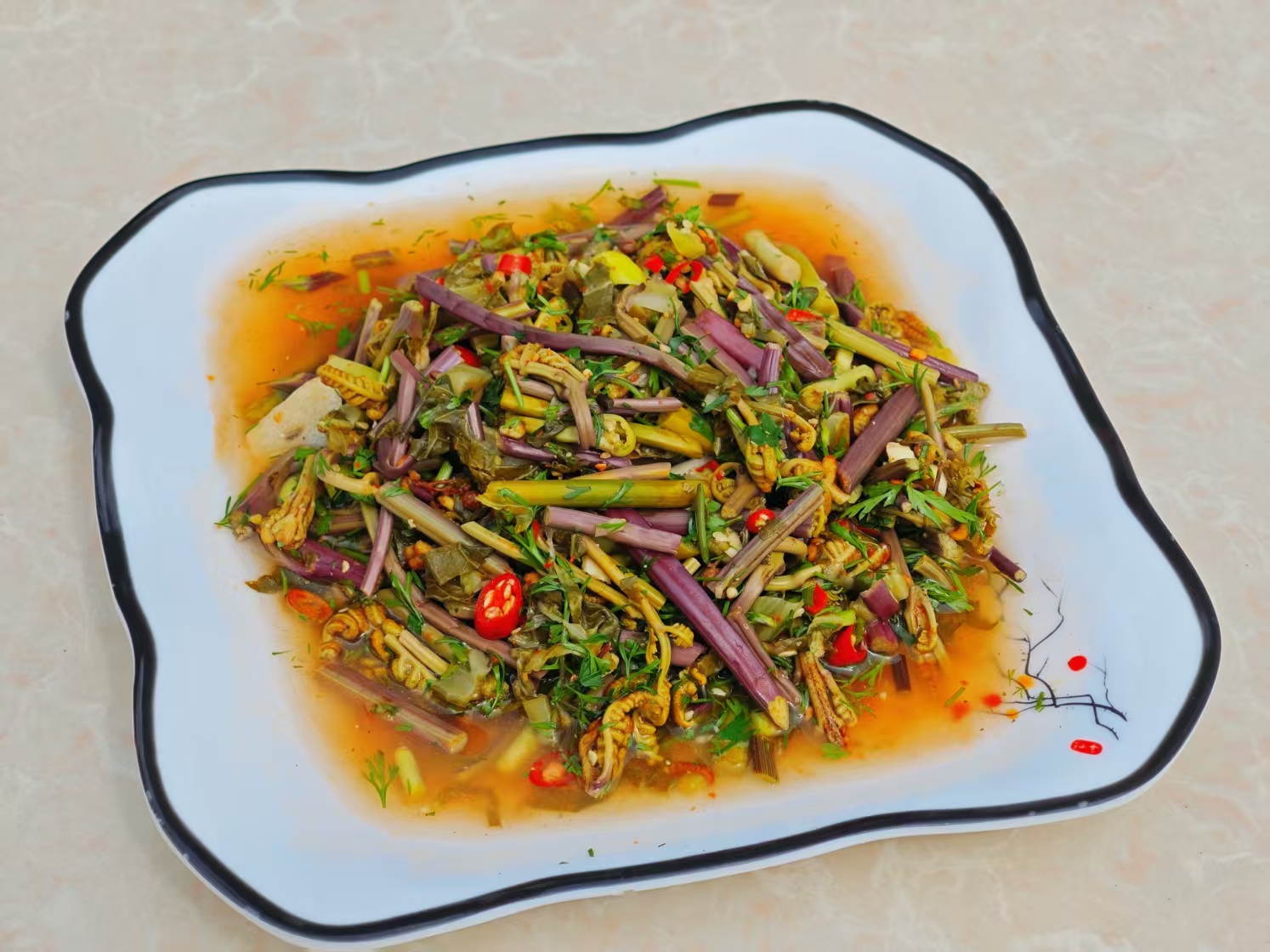 在临沧市云县涌宝镇的葱郁山林中,蕨菜是春日赐予的天然珍馐。乡民们以巧思妙手,将这沾着露水的嫩绿,化作四道各具风味的家常菜,让山林清气与人间烟火在餐盘上完美交融。