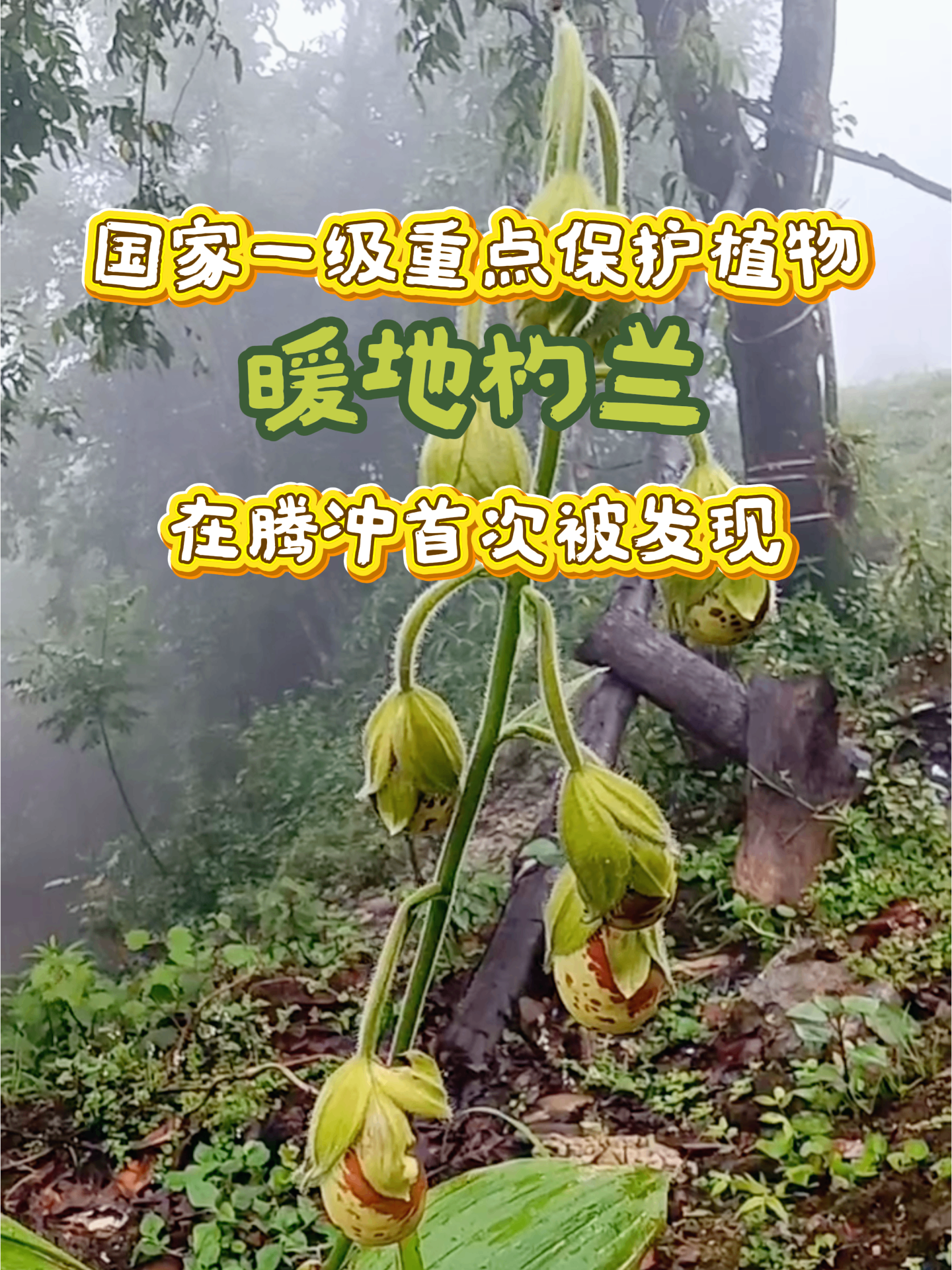 目前,在腾冲发现的野生植物暖地杓兰共3株,其植株高大挺拔,达1.5米,叶片青翠,株形美观,工作人员已对其采取了就地保护措施。(视频拍摄/张庆留;视频剪辑/彭蕾)