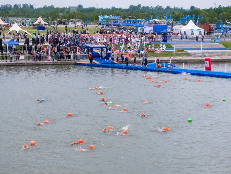 2025年6月1日,中国铁协C级赛事——江苏盐城大纵湖生态铁人三项赛在盐都区大纵湖景区和蟒蛇河生态廊道成功举行,吸引全国26个省份500余名选手参赛。赛事以“水陆双栖、景赛一体”为特色,赛道南北贯穿沿河绿道,串联多个驿站与景点,选手在蟒蛇河畅泳,在生态廊道间骑行奔跑,在竞技中充分感受盐城水乡的生态之美与人文魅力。