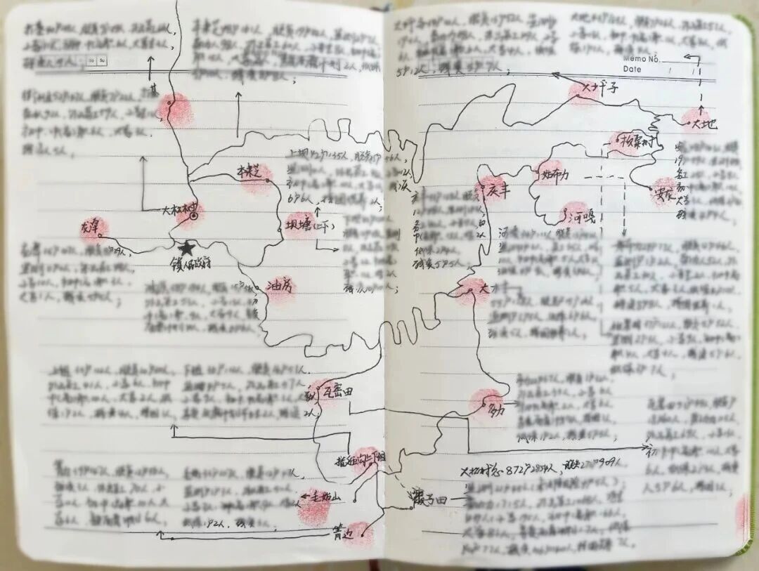 在乌东德镇的崇山峻岭中,昆明市禄劝彝族苗族自治县公安局乌东德派出所工勤付鑫泳,随身携带的笔记本里,藏着一幅特殊的地图——这张手绘“村情图”,线条质朴,信息翔实,不仅记录着他八年驻村的足迹,更承载着一名基层工作者扎根大地、服务群众的深厚情怀。