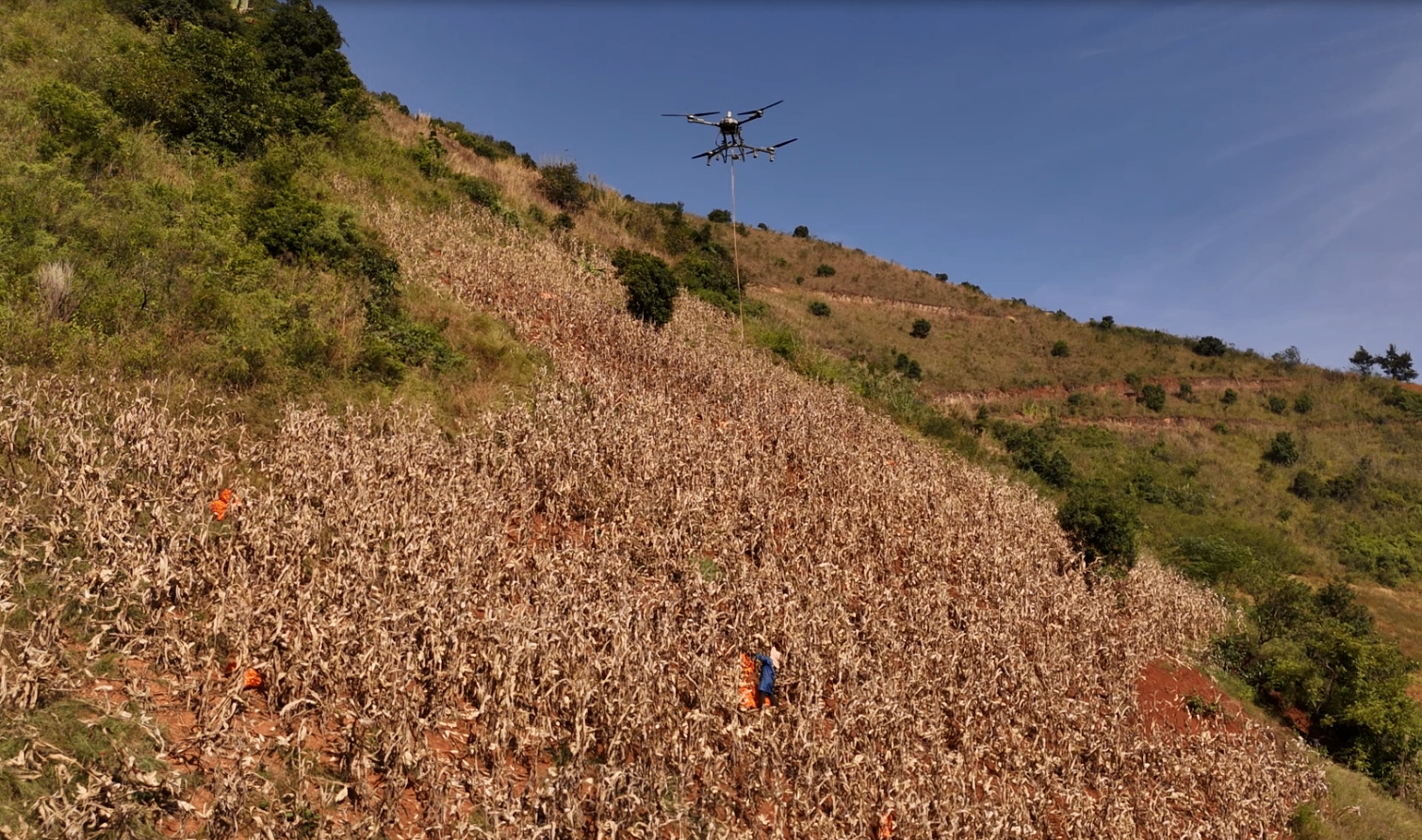 无人机吊运玉米(王学云/拍摄)