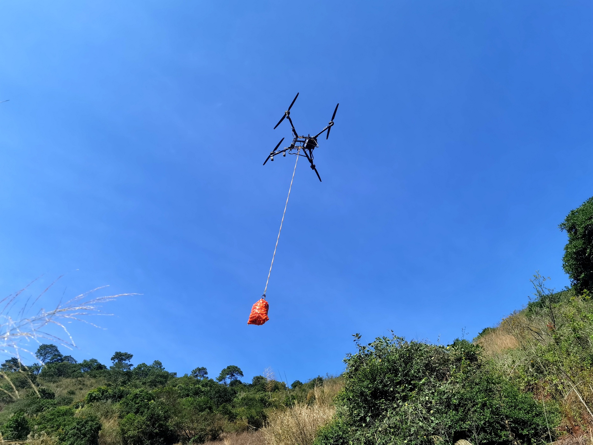 无人机正在吊运云米(徐静/拍摄)