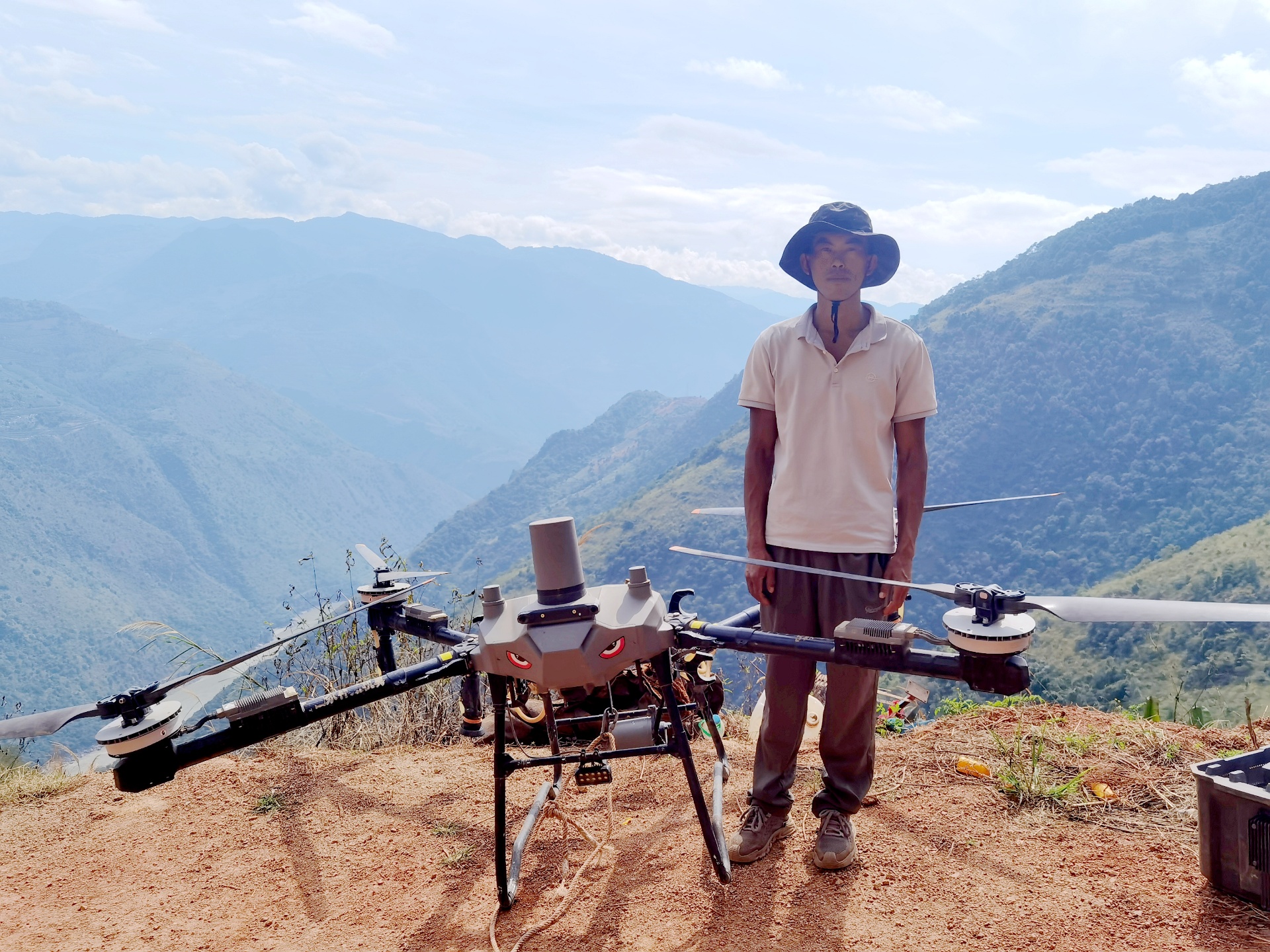 无人机的螺旋桨卷起的气流吹动着杂草灌木,也将李云飞黝黑脸上的汗珠吹得微微晃动。这位土生土长的峡谷汉子,正用科技的力量,改写着家乡“靠天吃饭、靠肩扛背驮”的农耕历史,成为当地人口中的“飞天农人”。