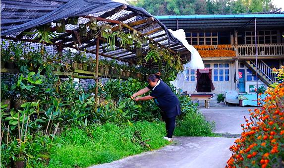 杨蓉梅在打理院里的石斛(侯云鹏 摄)