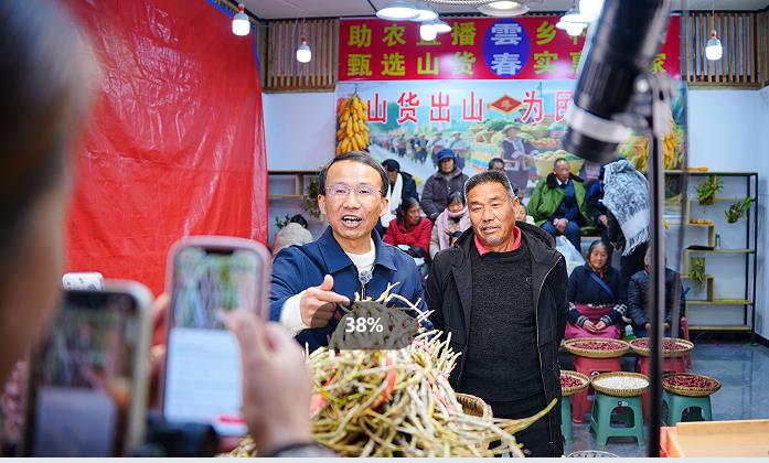 “小杨,来帮我卖点儿石斛,自己种的,不打药不施化肥……”仲冬深夜,在云南省保山市龙陵县平达乡平安村民安园移民搬迁点,热闹的助农直播像往常一样正在进行。10多位群众带着自家种的石斛、白芸豆、核桃等特产轮番上前,主播杨根余对着镜头展示起了这些高原农特产。