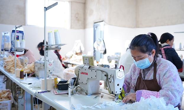 搬迁群众在玩具厂中就近务工(侯云鹏 摄)