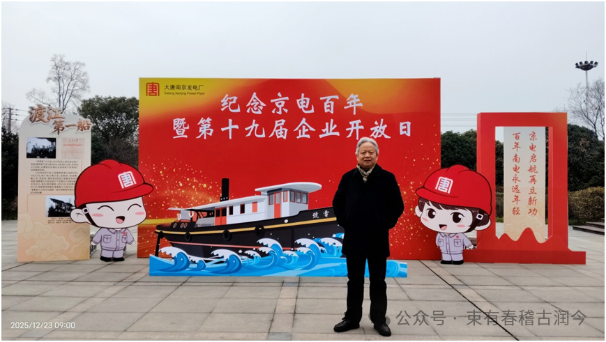 2025年12月23日上午,一场以“百年南电永远年轻京电启航再立新功”为主题的企业开放日活动,在大唐南京发电厂隆重举行。我作为一名曾经为“京电号”小火轮、为这艘“渡江第一船”而投入研究精力、参与其保护修复和宣传的老文物工作者,有幸应邀参加了本次活动,并以文史专家的身份在大会上作了汇报发言。可以说,是再次为“渡江第一船”出台,我感到无上光荣。