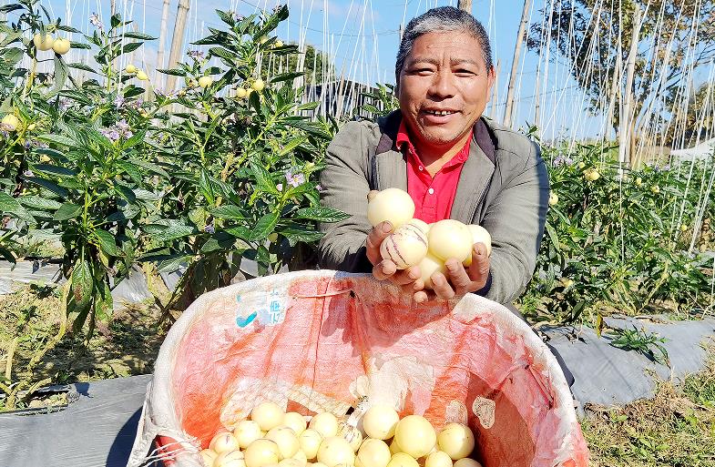 群众栽种的人参果喜获丰收(徐静拍摄)