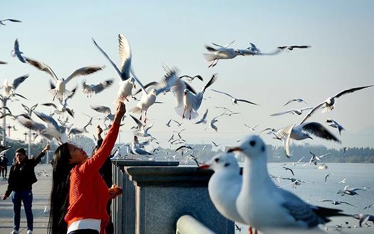 时值二九,新年轮转——祖国西南边陲的昆明,依然是“天气常如二三月,花枝不断四时春”;昆明滇池湖畔的睡美人,依然千年沉睡——即便来自西伯利亚的小精灵红嘴鸥,已经持续与昆明相约了40年;即便万羽倾城,也没有打扰到“她”的“甜睡”。或许,在晨曦初露时分,“她”会偶尔醒来梳妆,万羽倾城,竞看她倾国倾城的容颜。