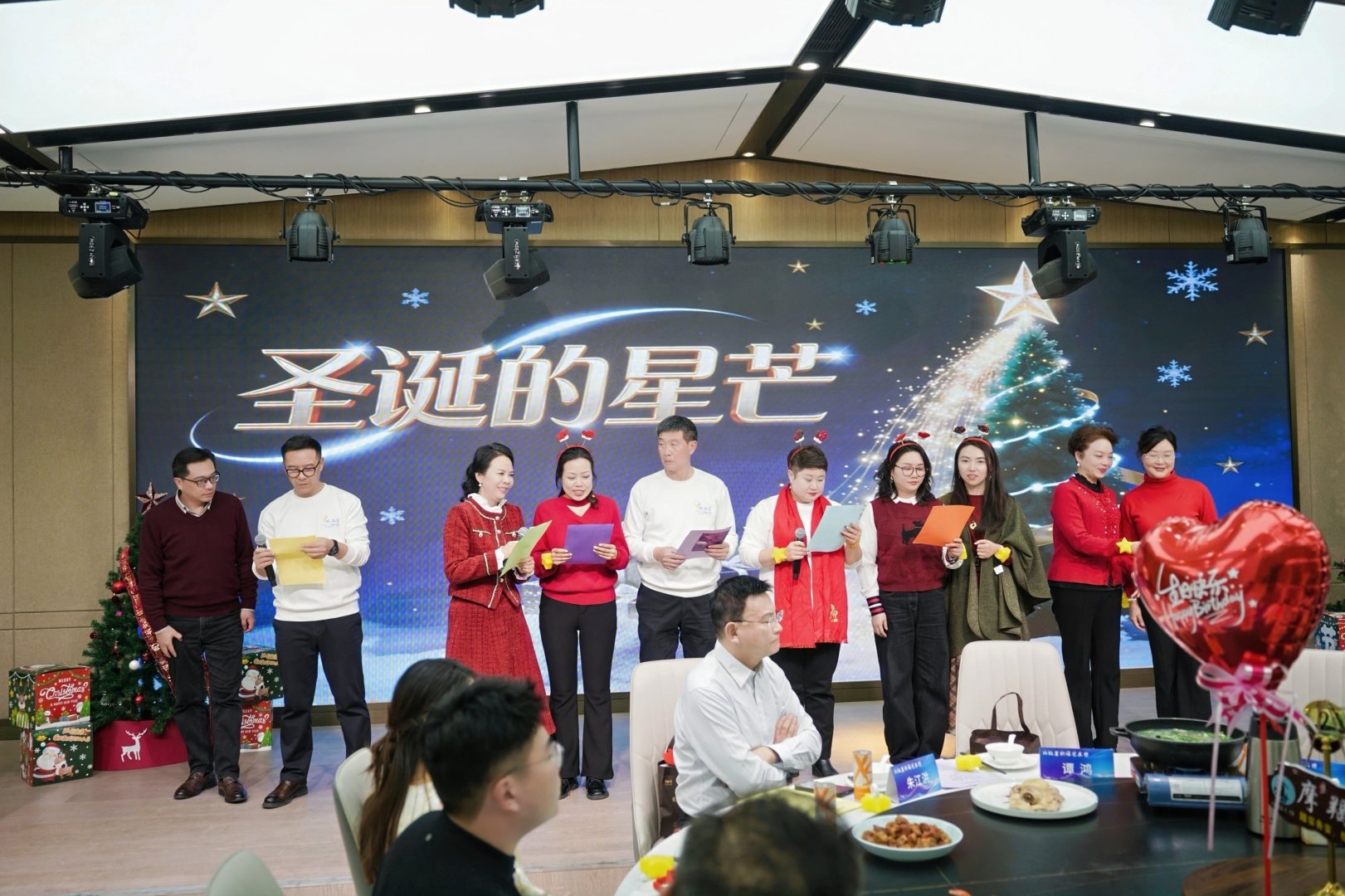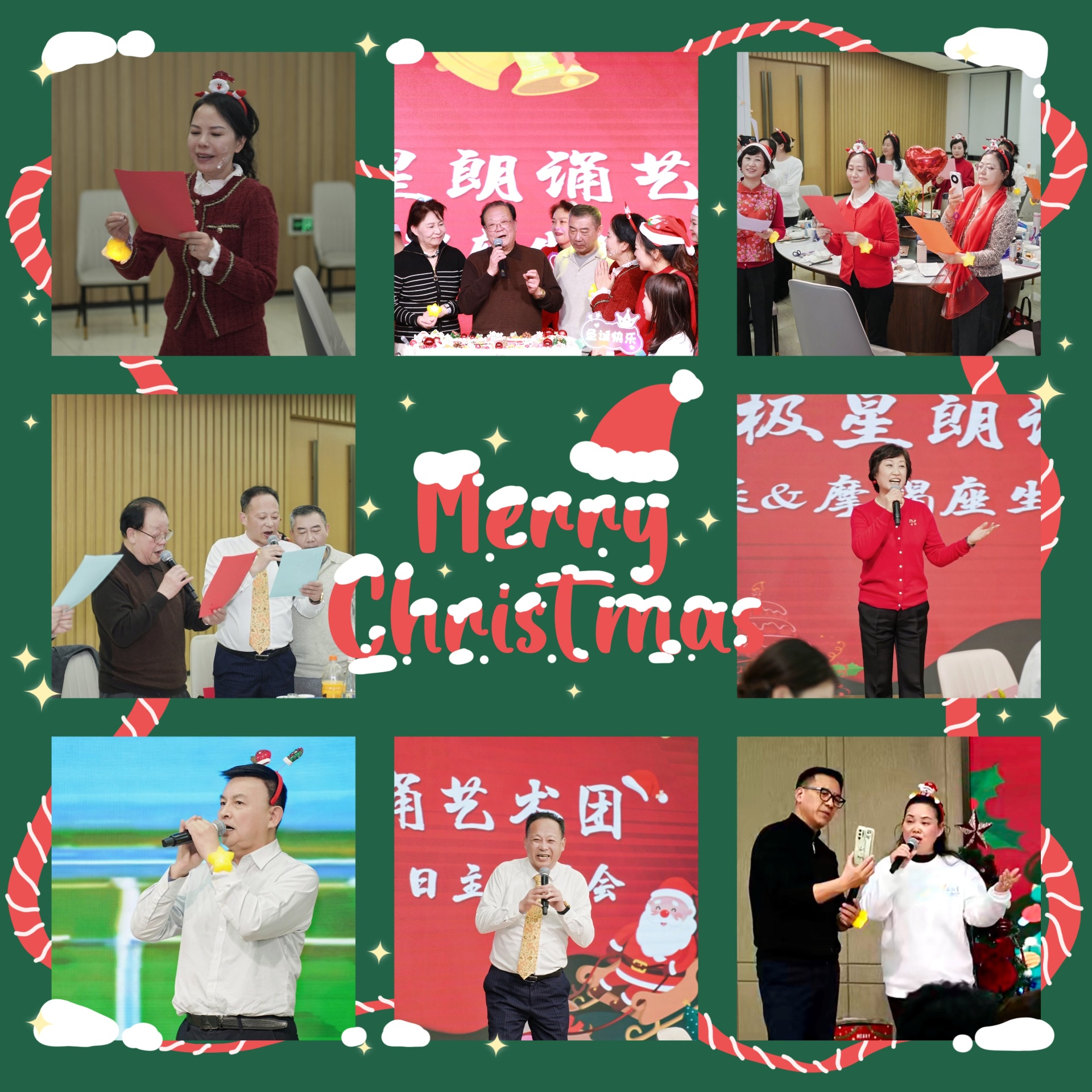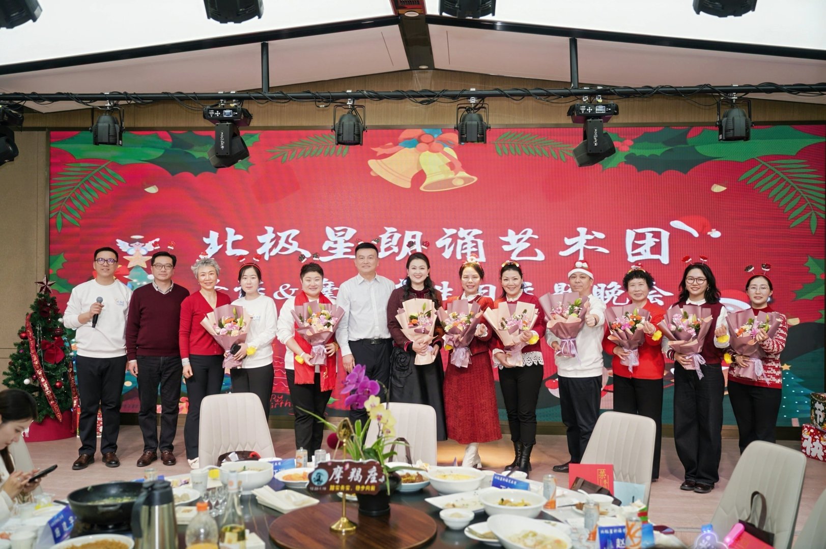 2025年12月25日晚,北极星朗诵艺术团“圣诞~摩羯座生日主题晚会”在大家共同装扮的洋溢着节日气氛的中科宴会厅温馨举办。本次晚会以“星雪同歌,生辰共贺”为主题,巧妙融合了圣诞节的浪漫诗意与摩羯座生辰的温情祝福,为全体团员带来了一场温馨治愈、热烈诗意的艺术盛宴。