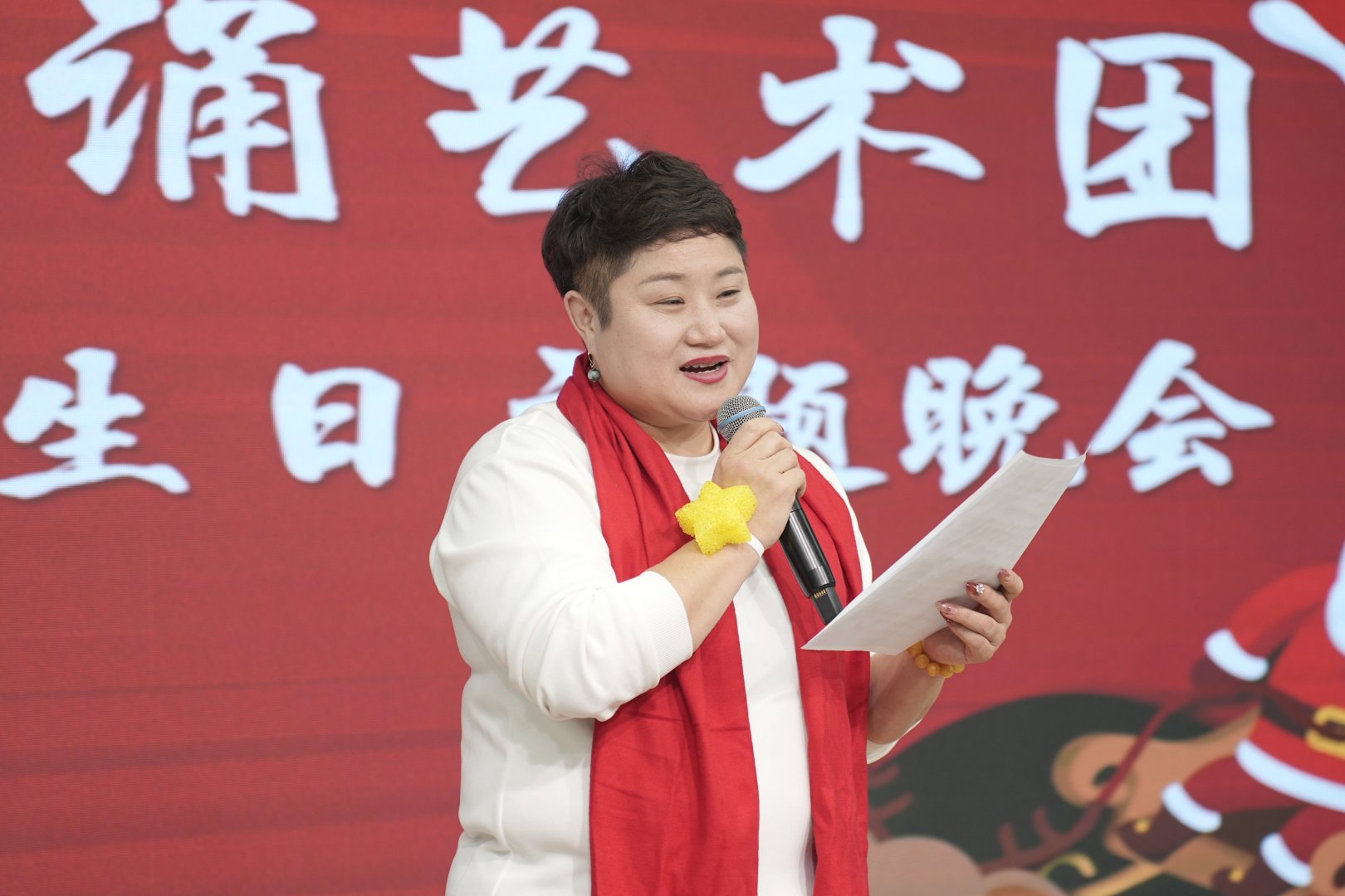 在《星光寄语》环节,团员们现场朗读了提前收集的手写祝福卡片,字字句句情真意切。寿星代表丁冬梅的感言分享,更是充满了对艺术团这个集体的热爱与感激。