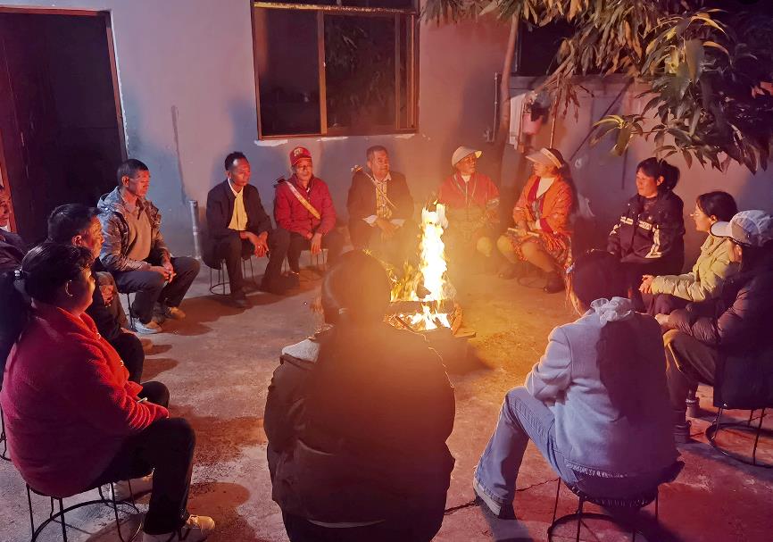 “社会文明大提升,人民生活品质高……”入夜,腔调悠长的《古本山歌调》,从搬迁点上的农家小院飘来,又一场火塘会在群众家中举行。