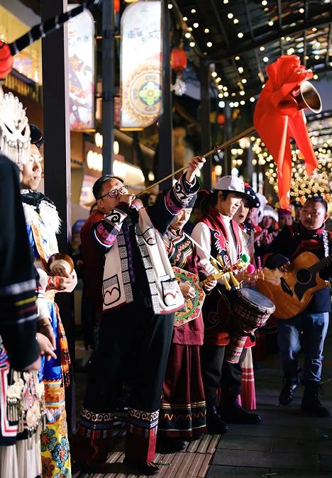 “三碗美酒连杯倒,彝家真情敬贵客!”彝族非遗文化,融合拦门酒、彝绣体验、长街宴、非遗展演等互动环节,不仅展现了浓郁的民族风情,更通过场景创新与业态融合,为市民游客提供了集文化体验、社交互动、夜间消费于一体的综合性服务消费新场景。