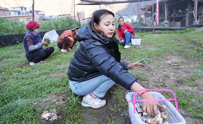 空气中,泥土的温润与菌菇的鲜香交织缠绕,沁人心脾,满溢着丰收的喜悦与期盼。这片仅有一亩的反季节菌菇试验田,虽面积不大,却意义非凡——它不仅填补了怒江冬季鲜菌供应的市场空白,更打破了村民“冬闲在家”的旧习惯,让冬日的乡村充满了劳作的生机与活力。