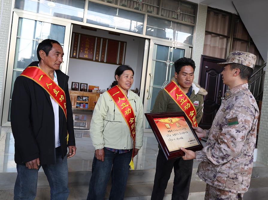2月6日,云南省保山市龙陵县人民武装部、县退役军人事务局组成慰问组,带着党和政府的关怀与尊崇,先后深入辖区龙江乡、镇安镇,开展立功军属慰问活动。为现役军人沈富灿、张学灿、张本所、张家武的家属,郑重送上三等功及三级表彰立功喜报、荣誉绶带和慰问金,切实把军营荣光传递到军属心中。