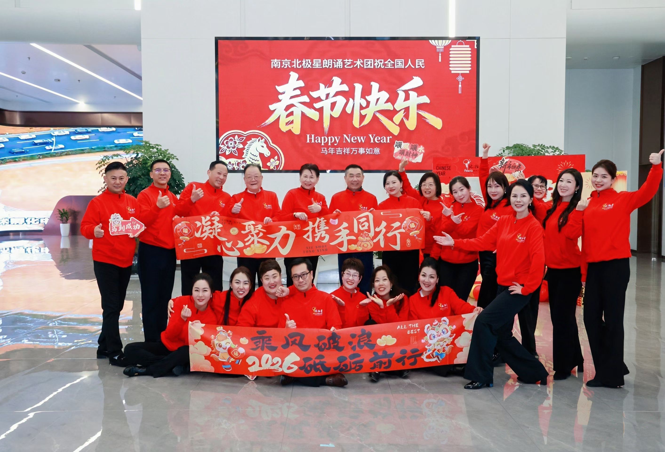 2026年新春将至,韵语星河•南京北极星朗诵艺术团主干人员齐聚江北创作实训基地,以一种别开生面的“接龙快闪”形式,完成了一场充满创意与温度的新春拜年视频录制。在“双核领航”的号角中,用声音为全国人民送去春的气息与马年的祥瑞。