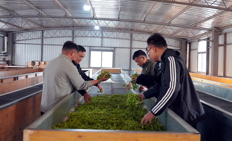 一边是茶农在茶园里忙碌,一边是茶厂里制作茶叶的机器轰鸣。在离鲁金相茶园几百米的润源食品有限公司,负责人禹建平提前完成设备检修、人员到位,第一时间开秤收鲜、赶制新茶——确保头茬春茶及时加工、抢鲜上市。