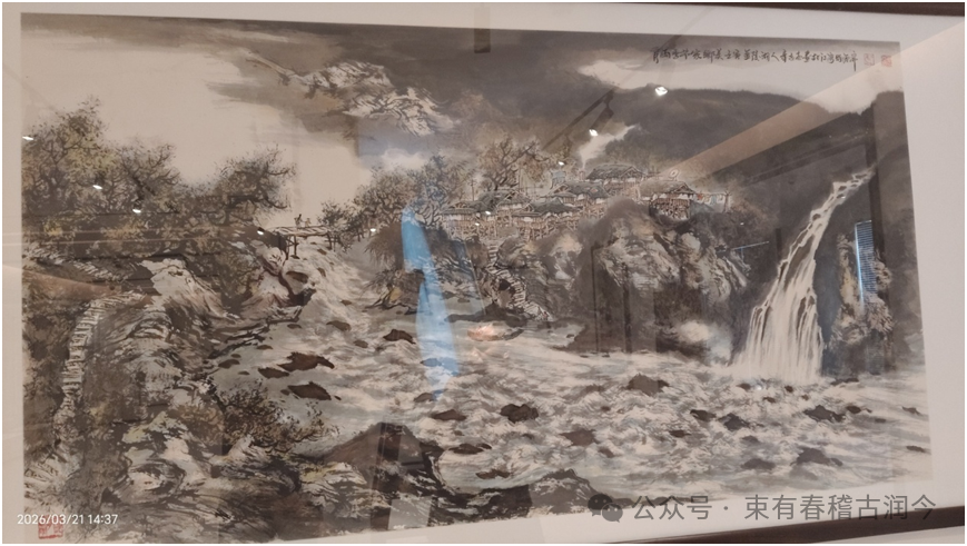 第二件是重达2吨、高1米多的《锦绣河山》青花瓷缸画。这件作品同样采取“釉下彩”绘制方法,创作过程同样是艰辛无比。但大师能够做到一气呵成,其创作过程中的立体思维和笔墨把控能力,不得不令人叹为观止。这件作品能够在艺术馆中陈列,当时是通过起重机的一次次起吊才完成的。艺术创作也是一项十分艰辛的劳动,我们常人没有理由不去尊重艺术家的劳动。