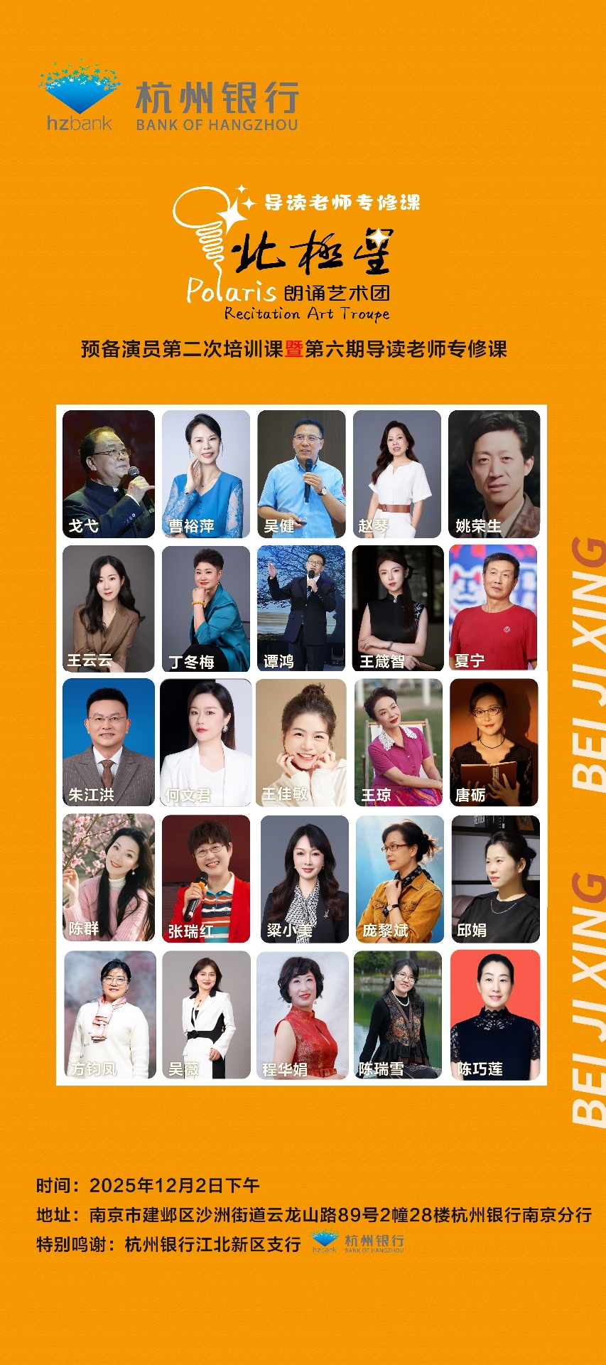 北极星朗诵艺术团培训课圆满举行:声情并茂,演绎经典 北极星朗诵艺术团在杭州银行南京分行举办第二次培训课暨第六期导读老师专修课,戈弋老师现场指导学员演绎多部经典作品,强调自然表达与情感共鸣,推动朗诵艺术的精进与传播。 文化纵横 2025年12月03日