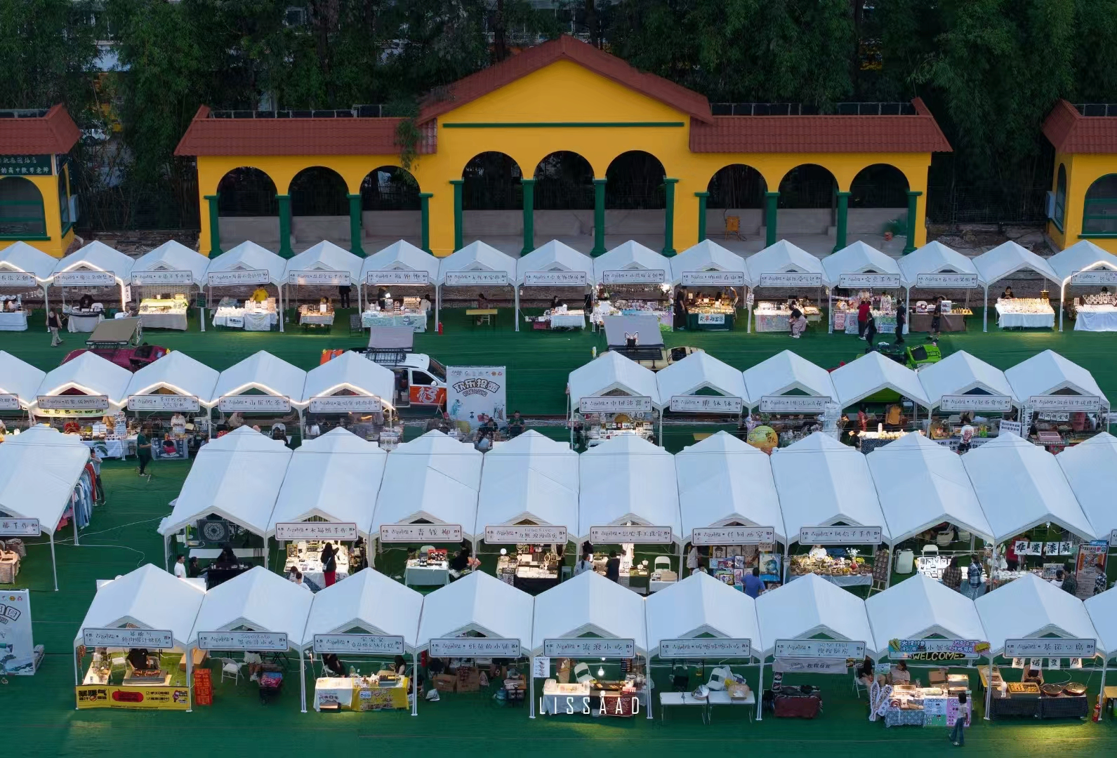 (图为:五华区麻园米轨公园正在准备出摊的商户)
