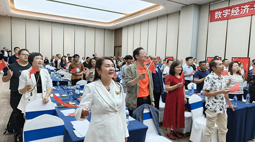 14时,峰会于三段展现数字经济澎湃活力与企业创新历程的振奋视频中拉开序幕。全体参会人员肃立高唱《歌唱祖国》,以激昂歌声抒发爱国情怀。集团公司舞蹈团献上司舞《永恒的光辉》,科技与艺术的巧妙融合赢得满堂喝彩。