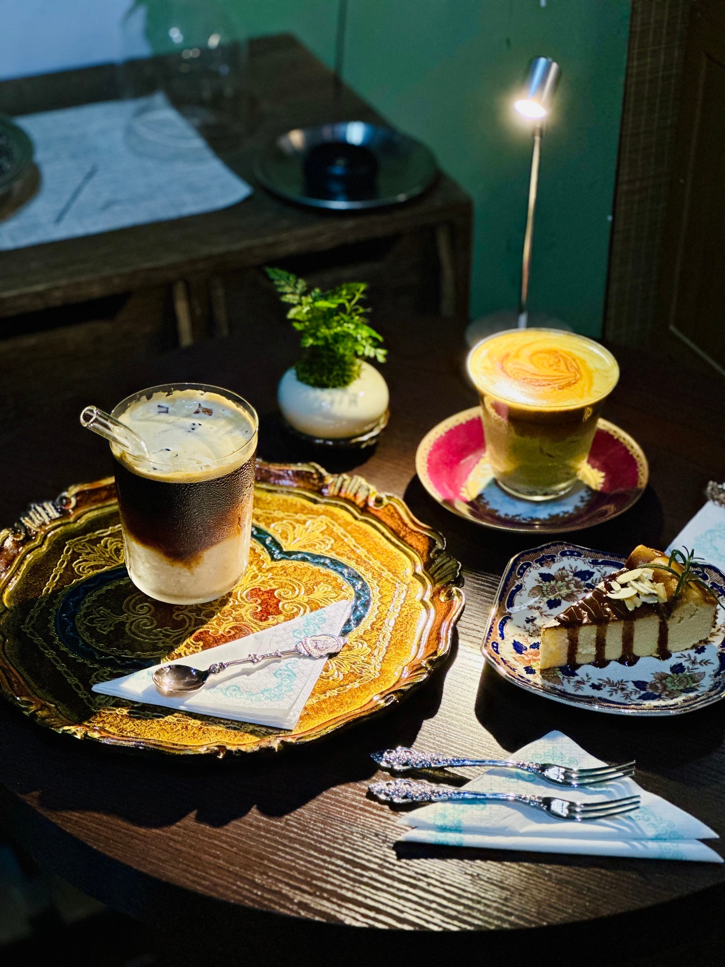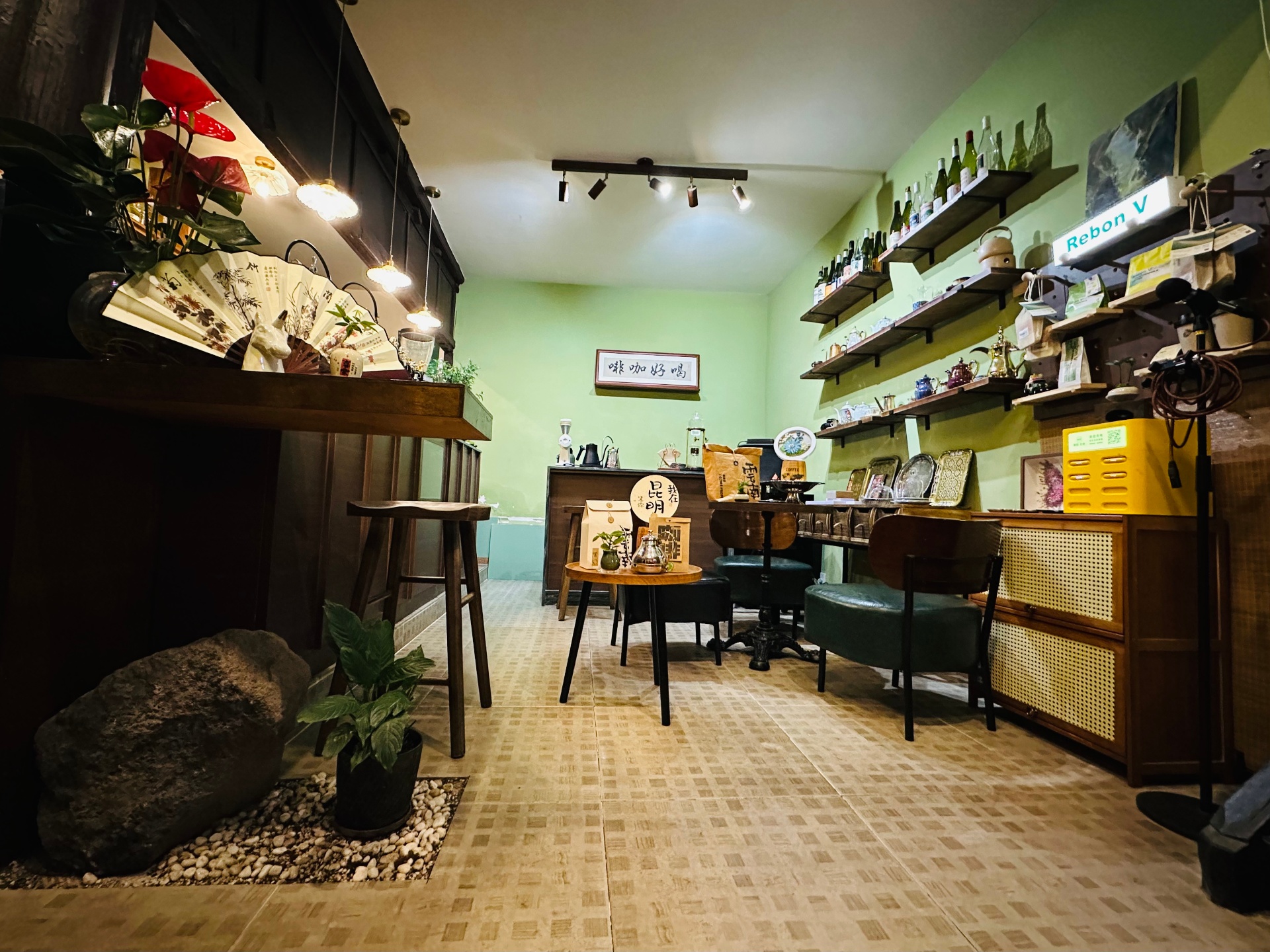 店内装修得很有格调,中古风氛围感拉满,而且咖啡杯和其他瓷具都是老板从海外淘来的,一看都是些老古董和艺术品。在一楼小院里坐着,看着蓝天白云,有种偷得浮生半日闲的感觉;二楼的阳台古香古色,仿佛让人来到了南洋时代。