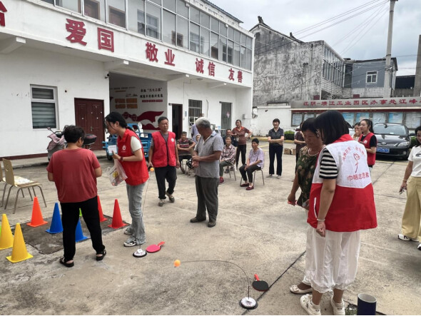 江峰村新时代文明实践站则通过运动游园会带领老人们焕发活力。康复师现场指导养生操,现场的锥桶套圈、秋韵投壶等趣味项目兼顾娱乐性与锻炼效果,老人们在趣味项目中舒展身心,展现“老当益壮”的风采。在系列敬老活动中,澄靖园区通过感官体验、怀旧互动、健康运动等多种形式,既弘扬了孝亲敬老传统,又提升了老年人的安全防范意识。