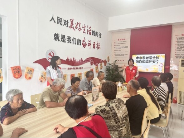 溢馨苑社区新时代文明实践站开展怀旧茶话会,在展示老物件、老照片的同时,志愿者通过反诈视频讲解反诈知识,并设置互动答题环节,让老人们踊跃分享防骗心得。