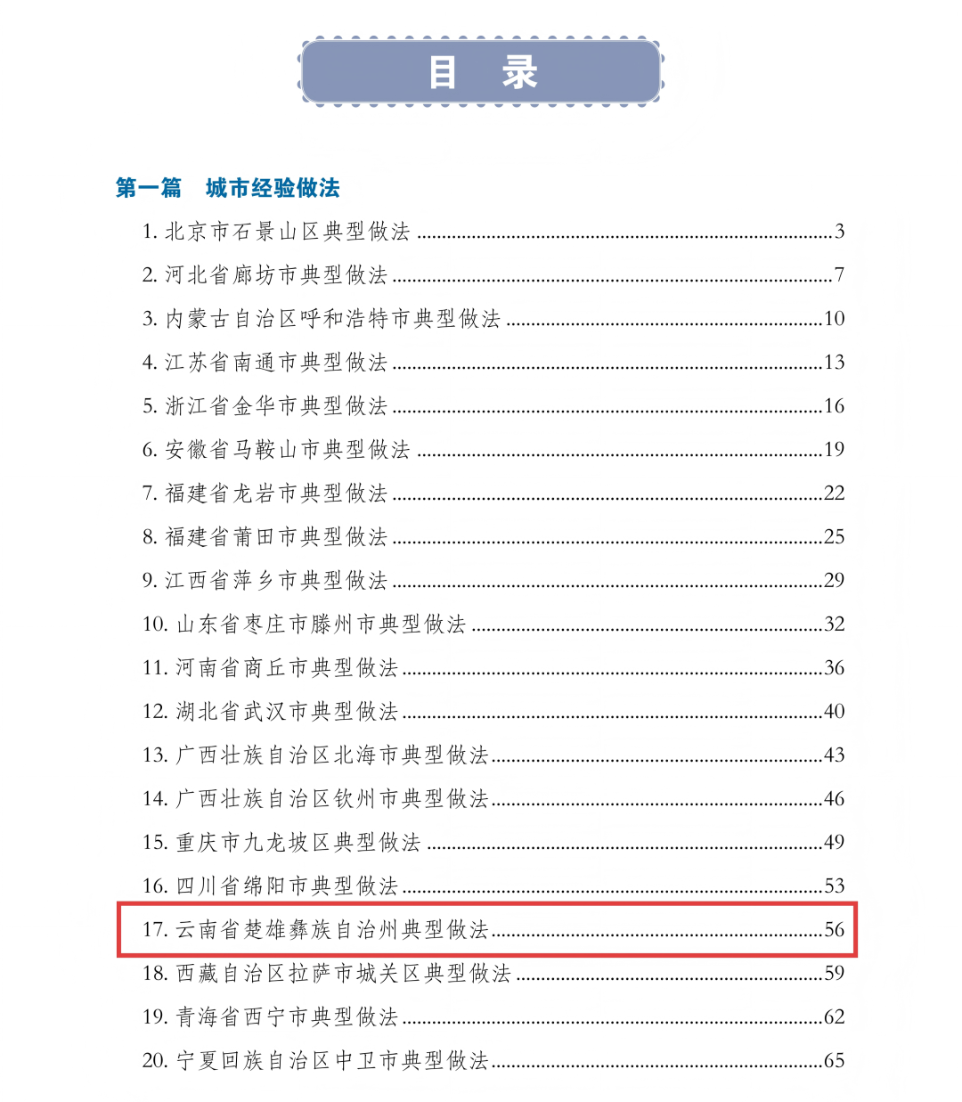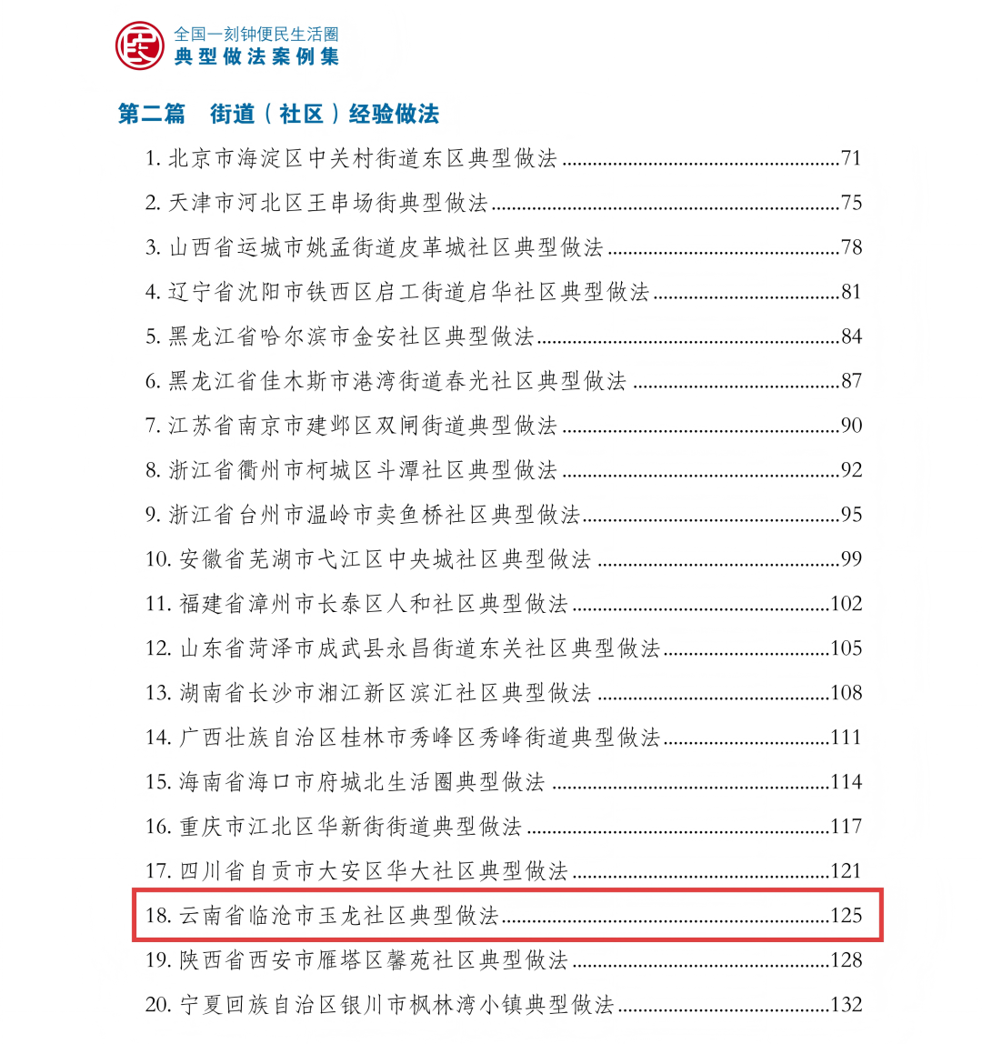 《案例集》经各省市推荐和专家复核,从200个案例中筛选出城市案例20个、街道(社区)案例20个、企业案例5个,云南省楚雄州楚雄市和临沧市玉龙社区做法入选典型案例。