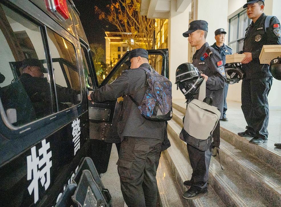 第二梯队民警辅警携带抢险救援物资,随时做好增援准备,有力维护社会稳定,守护人民群众生命财产安全。(云南省公安厅)