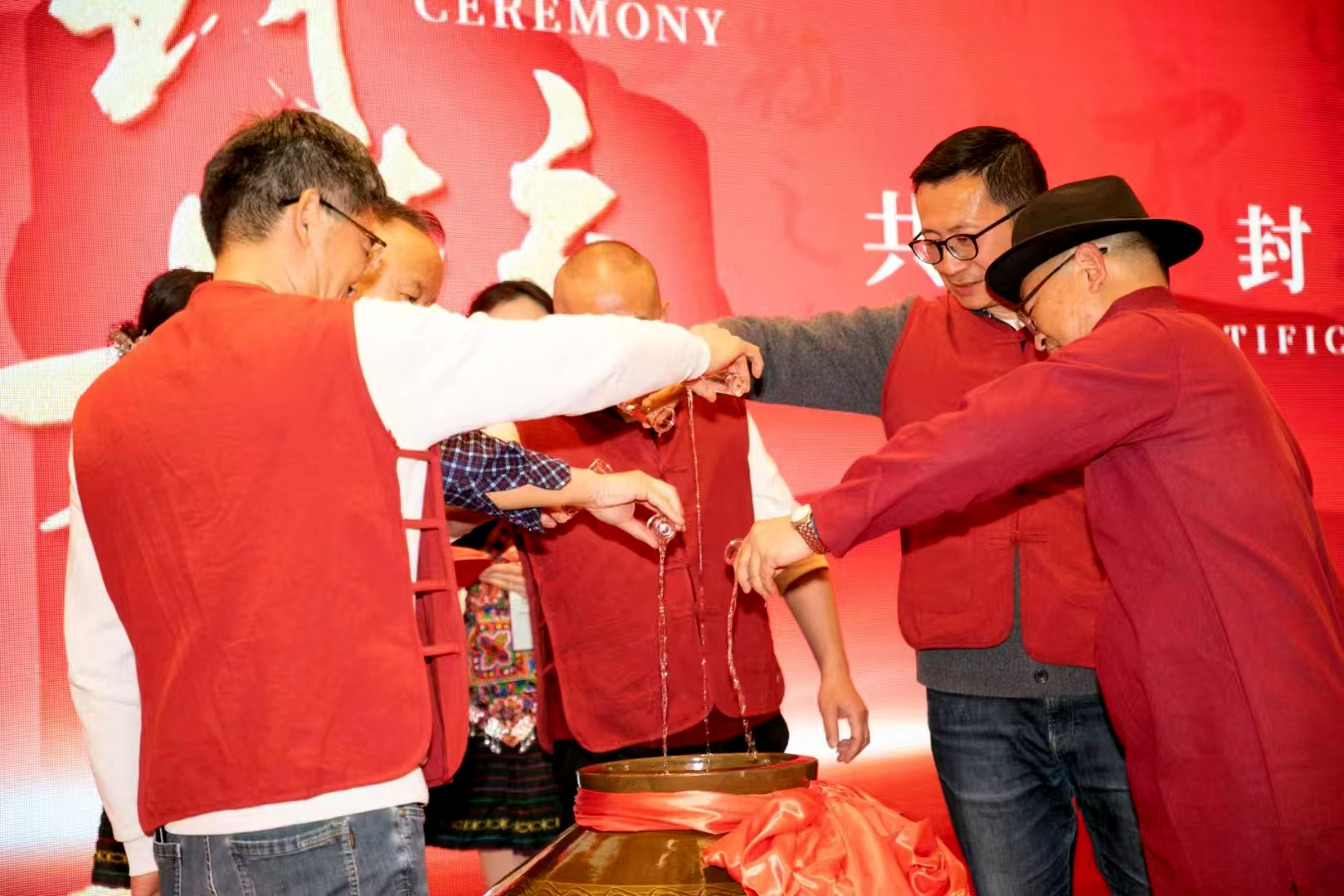 在汇极堂品牌发布会暨全国招商会的晚宴上,董事长王耀飞慷慨激昂地演绎了来自东汉末年政治家、文学家曹操的《短歌行》,由此拉开了晚宴帷幕。晚宴上,隆重推出了汇极堂定制款小杯酒“春夏秋冬”新品系列,亚洲车神曾凡仁,以汇极堂小杯酒代言人的身份参加了“封坛大典”。