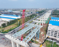 江阴靖江长江隧道北接线迎来重要施工节点 41米跨中洲路钢板梁成功安装