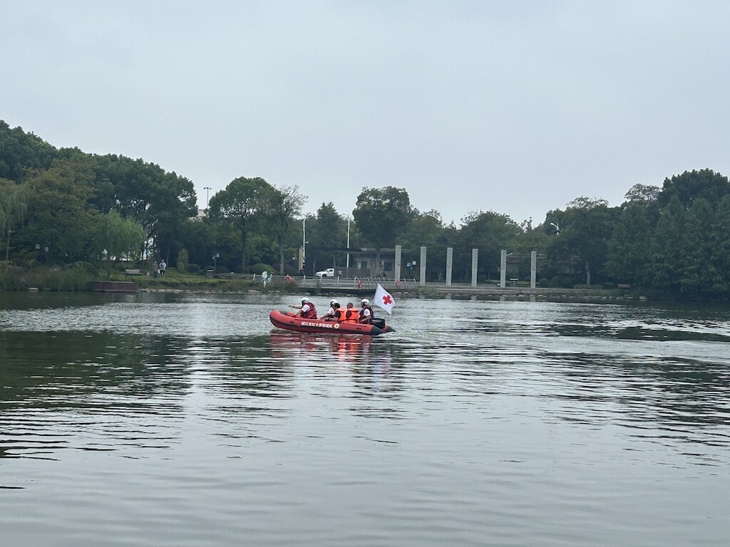 演练模拟洪涝灾害发生后,部分群众被困的场景展开。收到救援指令后,红十字救援队员立即驾驶冲锋舟,携带救生衣前往人员被困地点,有序组织安全撤离。针对灾害造成的人员溺水和受伤情况,队员们快速对受伤群众进行检伤分类,实施心肺复苏、骨折固定、外伤包扎等急救措施。在集中安置区,队员们分工合作搭建帐篷,用于安置受灾群众。整场演练高度还原了真实的应急救援全过程。