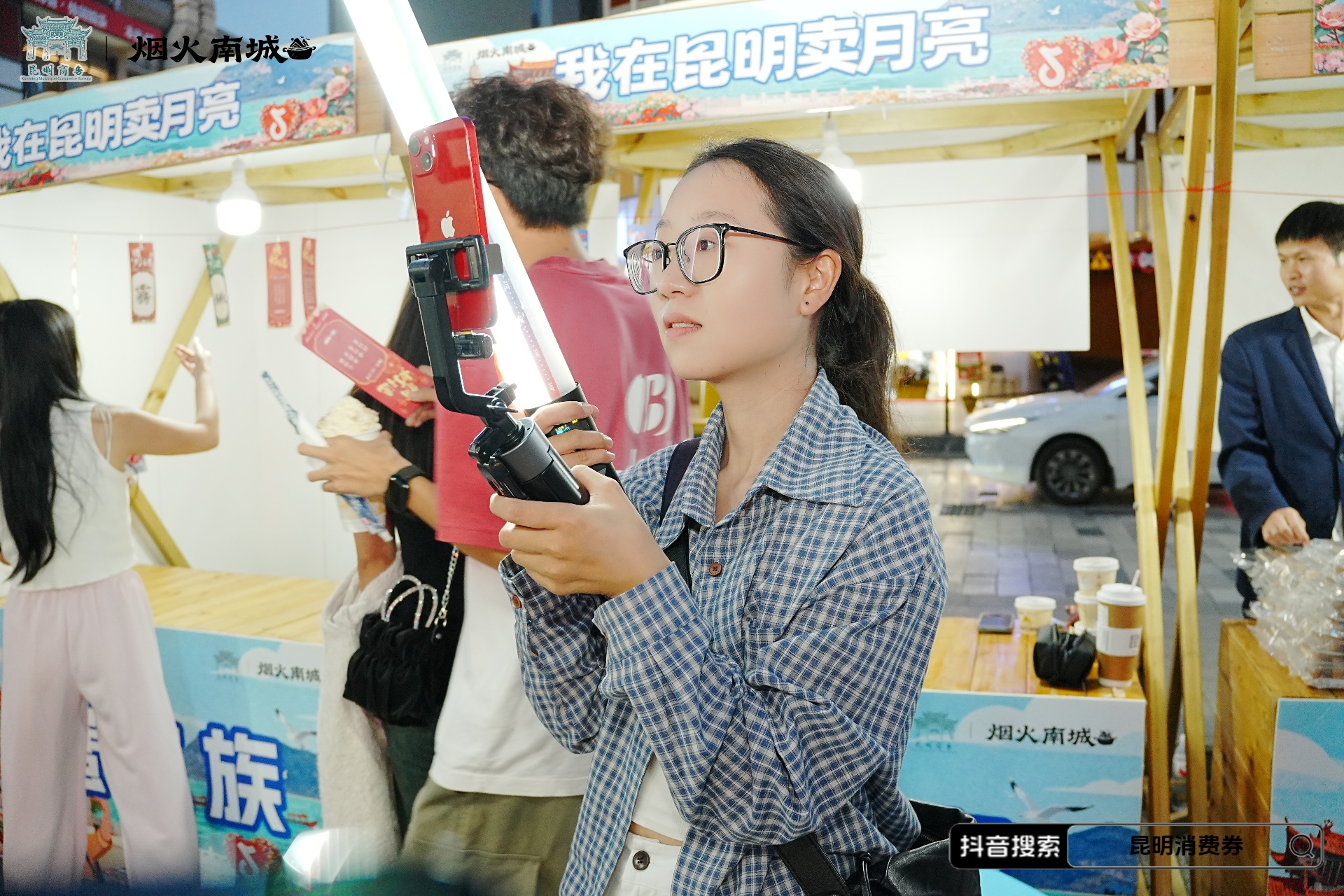 本次活动还邀请了春天礼、蟹江族、海集商贸、老俞花摊、菇得蘑您、青花汾酒体验中心、讲武文创、艾克3D打印潮玩体验店、小小马帮、BUYERS SHOP、晨曦文玩手作、山谷有柴、木易然手、S.n水晶手作、三个铃铛、醒室等文创精品、非遗手工、国货潮玩等企业参加,各家拿出看家本领,引来游客和市民纷纷驻足,在品尝口味丰富的滇式月饼中享受多元创新消费场景的购物新体验,并在精美的中秋氛围打卡点拍照留念。