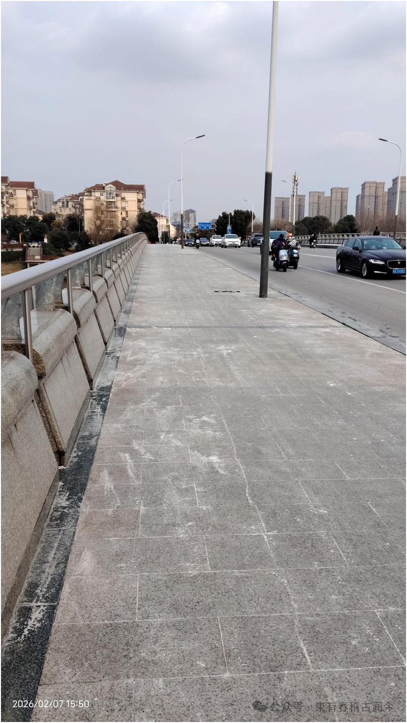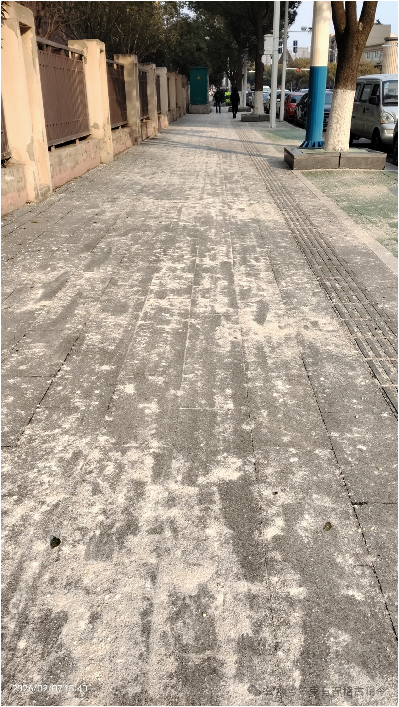 进入2026年,时值农历冬腊月,南京好像已经下过一两次雪了,在如何解决雪后路面清除积雪问题上,市政道路交通安全部门的对策,似乎真的到了匪夷所思的地步:将大量的工业用盐倾洒在路面上,有的地段甚至可以用“倾倒”这个词来描写。更为荒唐的是,有的地方,雪花还在飘舞、路面并未结冰时,就开始在路面撤盐。结果出现的是:路面上的盐比积雪多、雪停后但路面盐粒大量铺在路面上的现象。致使车辆在行驶路面上驶过,轮胎如同行驶在砂石子路面,发出“格格格”的声响。有的人行道上,也是铺满了盐粒,人们走在上面,没有雪后的美妙感受,却如同走进了晒盐场,鞋底被盐巴给摩擦得发白。由于大量盐巴在雪后存在,迫使路面清洁环卫工人要再肩负一项责任:雪后扫盐!这种奇葩事,也就是近几年才出现的。