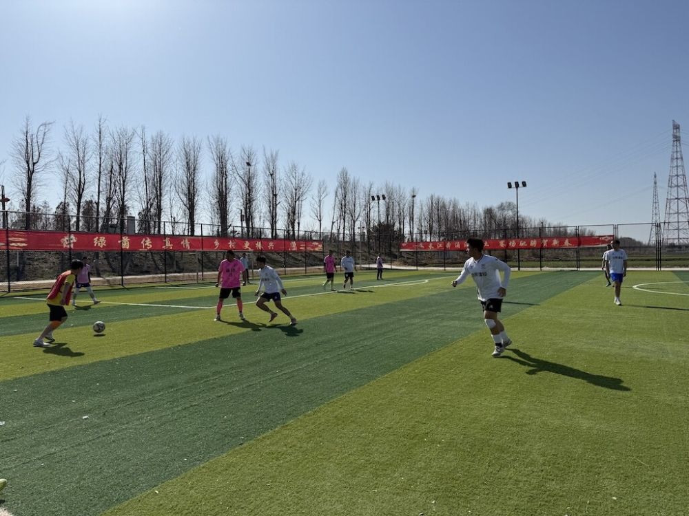 此次比赛由新桥镇新合村流浪者足球队、泰兴苍狼足球俱乐部、靖江牧马足球俱乐部三支球队参加,采用循环赛制。下午1点半,比赛正式开始。球员们迎着清爽的江风、沐着和煦的暖阳,精神抖擞、奋勇拼搏,攻防转换张弛有度,每一次抢断、射门都引得在场观众阵阵喝彩。大家在绿茵场上尽情挥洒汗水,既切磋了球技,又增进了情谊,充分展现出昂扬向上、团结奋进的精神风貌。