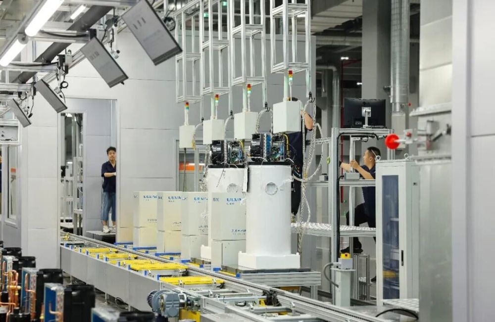 置身零碳工厂,通透的厂房、充足的光线、恒定的温度,“呼吸感”扑面而来,这不是普通空调的功劳,而是工厂“智慧能源中心”精准调度的结果。从屋顶的光伏板到室内的高效热泵技术、热回收技术,从冷机系统到新风系统,多种绿色能源和智能储能装置协同工作,让整个工厂像一个自给自足的生命体。 “智慧能源中心让工厂的绿电使用率冲到了近70%,综合能源节能率超过40%。”朱庆国介绍,在最大化降低运营成本的同时,工厂内夏天的温度可以稳定控制在28℃,冬天保持在20-25℃,同时新风系统实时过滤空气,可以为员工提供舒适的工作环境。 此外,迈能高科零碳工厂还打造了达到CNAS国际标准的全球热泵热水器实验中心,其中包括噪音实验室、焓差实验室和信赖性实验室。在这里,人工智能精准分析着产品全生命周期的数据:来自丹麦的声像系统可以测到9.9分贝的噪音,这类似人类心脏跳动的声音;-25℃到65℃的温区,可以在30分钟内快速切换;产品进入市场前将接受连续600小时的测试,确保安全可靠…… “国家提出‘双碳’目标,对我们企业来说,既是商机也是使命,实验中心的建立是迈能零碳工厂在建筑零碳的基础上,走出的产品零碳的第二步。”朱庆国介绍,实验中心的建立是迈能走向国际绿色市场必不可少的一部分,它将帮助企业产品拿到国际认可的碳足迹认证,出口欧洲直接免缴碳税。 人工智能+制造服务业 开辟生态化价值新蓝海 “传统的制造业要向进服务型制造转变,这是必然趋势,我们要让碳变成资产,帮客户创造价值,也助力国家双碳目标实现。”迈能的底气同样藏在这座零碳工厂里。 在减碳数字平台上,实时跳动着遍布全国的200多个热水系统运行状态,江南大学江阴校区等项目的光伏、水储能、热泵数据一目了然。而平台上实时采集的能耗数据,将节能效果换算成实实在在的减碳指标,未来,这些指标将变成可交易的碳资产。“我们为客户提供的,不只是热水设备和系统,更是一个个‘减碳单元’,最终汇集为碳资产平台”朱庆国说。