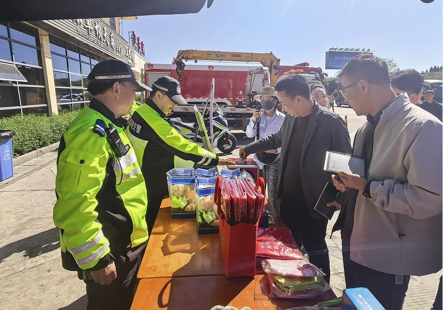 服务台上,应急药品、简易维修工具、饮用水及交通指引手册等物资整齐摆放,民警辅警与高速义警热情为过往司乘人员提供路线咨询、应急救助、简易检修等暖心服务,让长途出行更添安心。