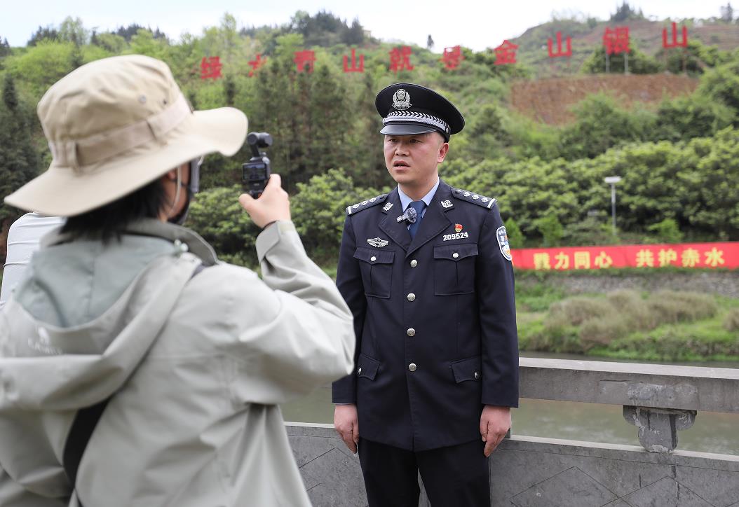 随后,采访团来到大湾镇罗甸生态警务工作站。赤水河在大湾镇绵延44公里,是镇雄段生态保护治理的核心区域。大湾派出所靠前设立工作站,精准守护生态安全。