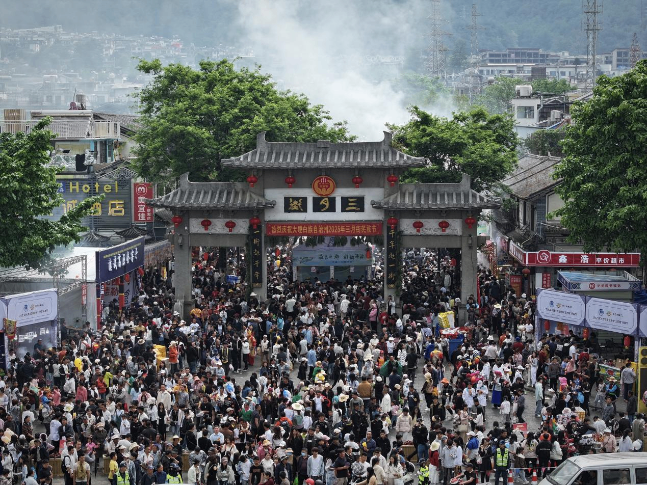 除了商贸交流,“三月街”更是民族文化的展示舞台。传统赛马、马术表演、射弩、秋千、陀螺、大本曲演唱、绕三灵等民俗活动轮番上演,让游客在欢声笑语中,读懂白族文化的深厚底蕴。
