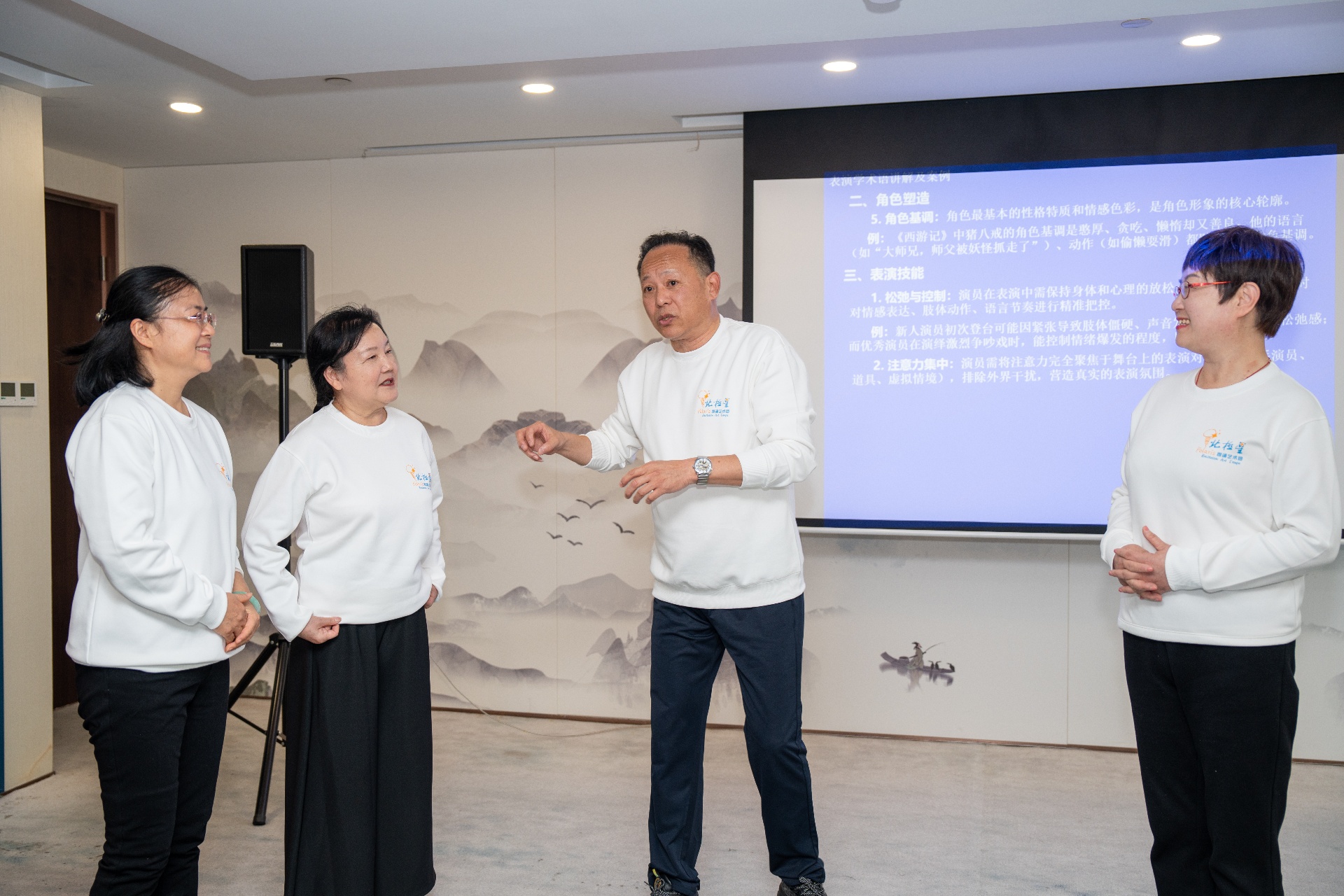 宿老师的讲授绝非纸上谈兵,他结合生活化的形象演绎与经典作品片段,将抽象理论化为可知可感的舞台行动。在现场指导环节,他更针对此前展示的节目,从动作细节到表情管理,给予了精准的点评与指导,让团员们获得了“立竿见影”的提升。课程中,团员们积极互动,踊跃上台体验,在“教学练”一体化的生动模式中,现场气氛被推向高潮。