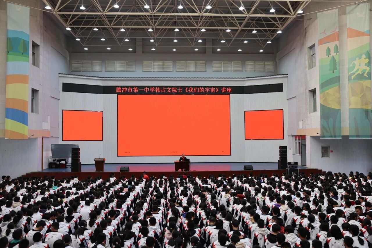 2024年3月15日,中国工程院院士、中国石化科协主席李阳,中国科学院院士、云南天文台韩占文,中国科学院老科学家科普演讲团团长周德进等8位科学家走进腾冲校园