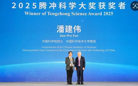 2025腾冲科学大奖获奖者潘建伟院士上台领奖。