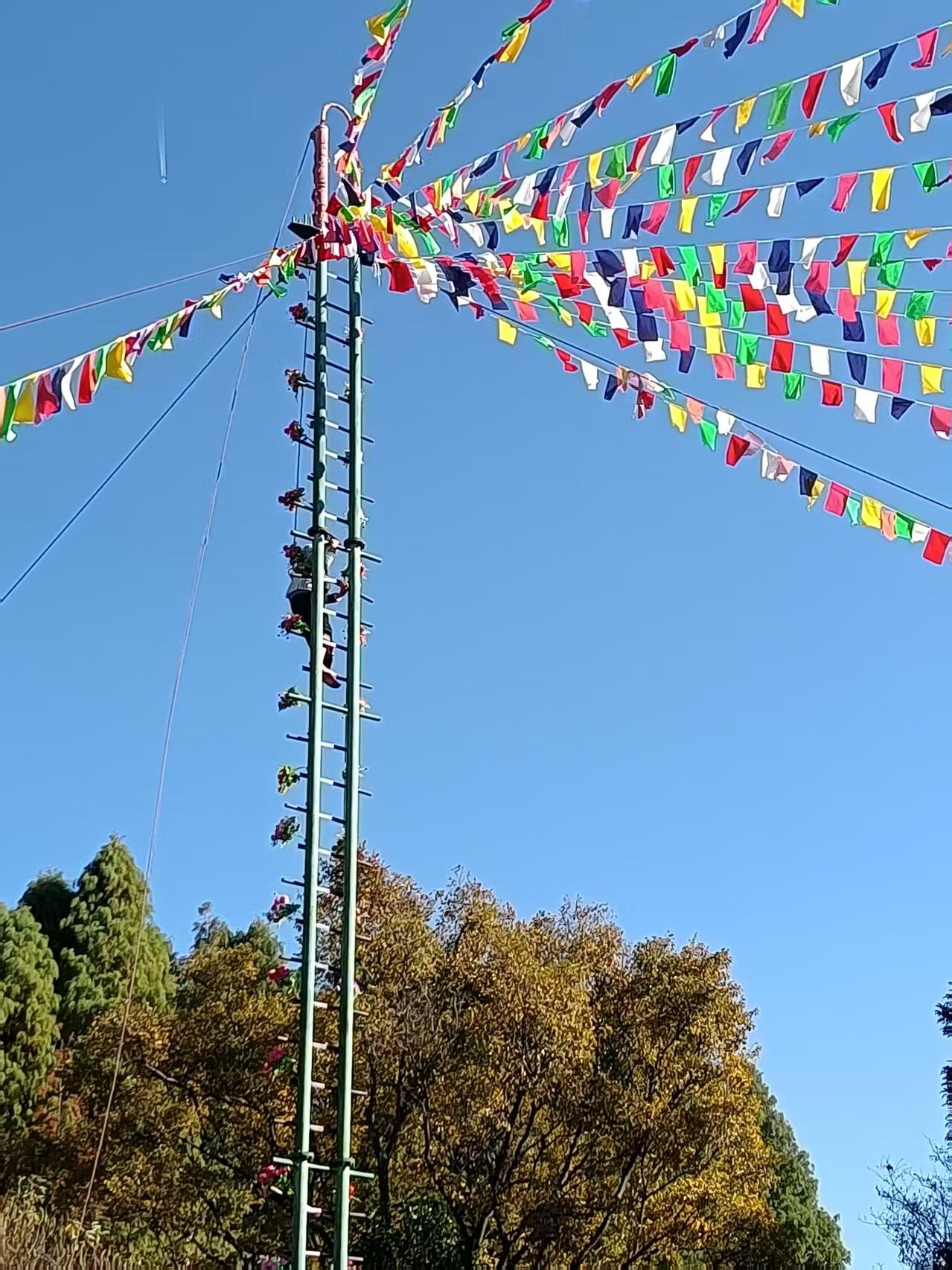 “阔时”为傈僳语,意为“新年”,是傈僳族最隆重的传统节日,至今已有千年历史,承载着民族的历史记忆、生产智慧与精神信仰,现已成为各族人民共享的民俗文化盛会,为国家级非物质文化遗产 。活动当天,云南民族村刀杆广场彩旗飘扬、鼓乐喧天,浓郁的民族风情扑面而来。下午15时许,庄重古朴的祈福仪式如期举行,祈求来年风调雨顺、国泰民安,传递着对美好生活的真挚向往。随后,震撼人心的“上刀山”非遗表演精彩呈现,表演者赤脚踩过锋利刀刃,以无畏姿态展现了傈僳族勇敢坚毅的民族品格,赢得现场观众阵阵掌声与喝彩。