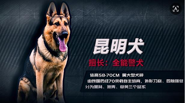 据了解,昆明犬培育工作始于二十世纪五十年代,是公安部昆明警犬基地通过长达数十年的艰苦努力,采用科学的群体继代选育法,成功培育出的优秀工作犬品种。1988年,该犬种通过公安部验收,被正式定名为“昆明犬”。2007年,该犬种又成功通过国家畜禽遗传资源委员会的品种审定,入选联合国粮农组织编制的《世界动物遗传资源状况》,成为中国首个也是目前唯一一个被国际组织收录的、具有完全自主知识产权的警用犬种。截至目前,围绕昆明犬的相关科研项目,已荣获国家科技进步二等奖等多个奖项,凸显其科技与创新价值。