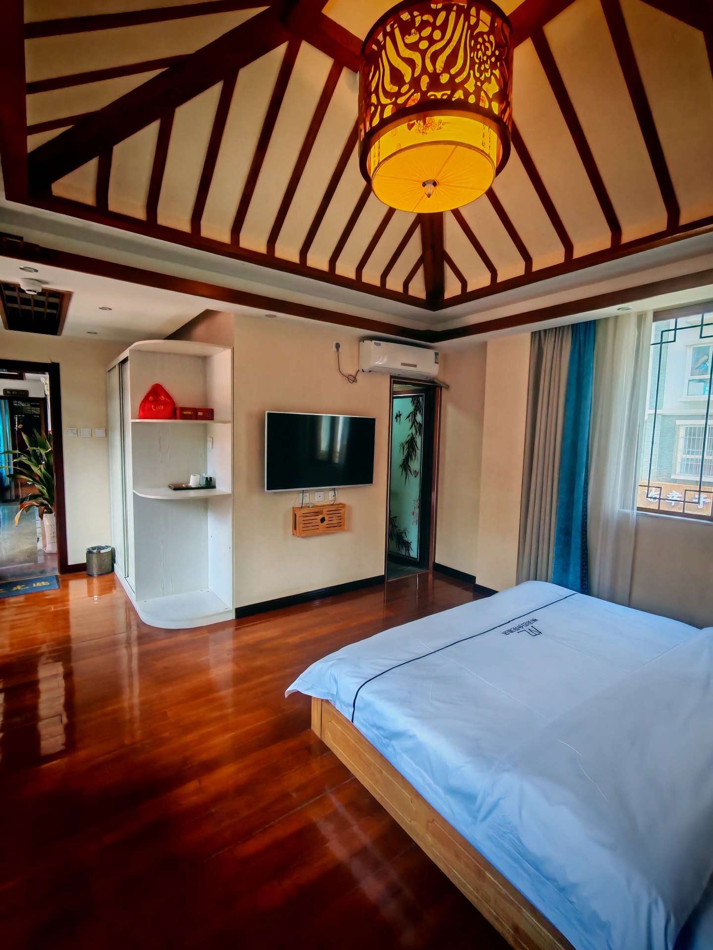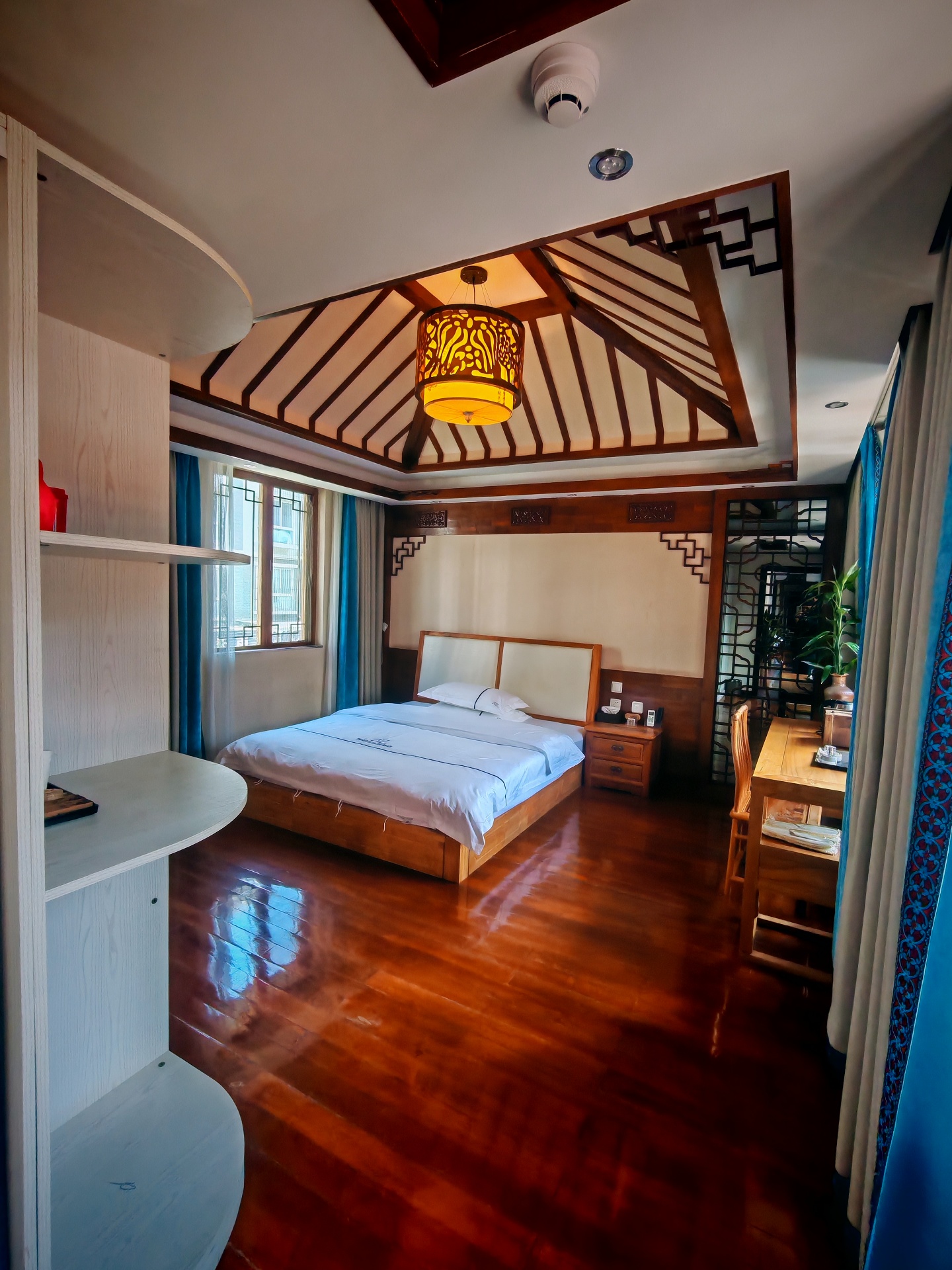 客房的布置也满是巧思,木质家具温润厚重,细节处的雕花、布艺都透着中式美学,住起来既舒服又有格调。不少游客住过后都感慨:“在巍山挖到宝!楠诏四合院酒店的中式美学狠狠戳中我,青瓦白墙间,连风都是温柔的。”而且酒店的位置超便利,步行就能逛巍山古城的小吃街、打卡拱辰楼,不用奔波就能把古城的慢时光攥在手里。