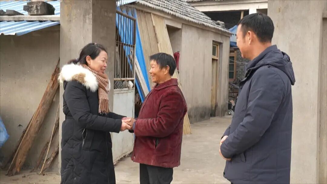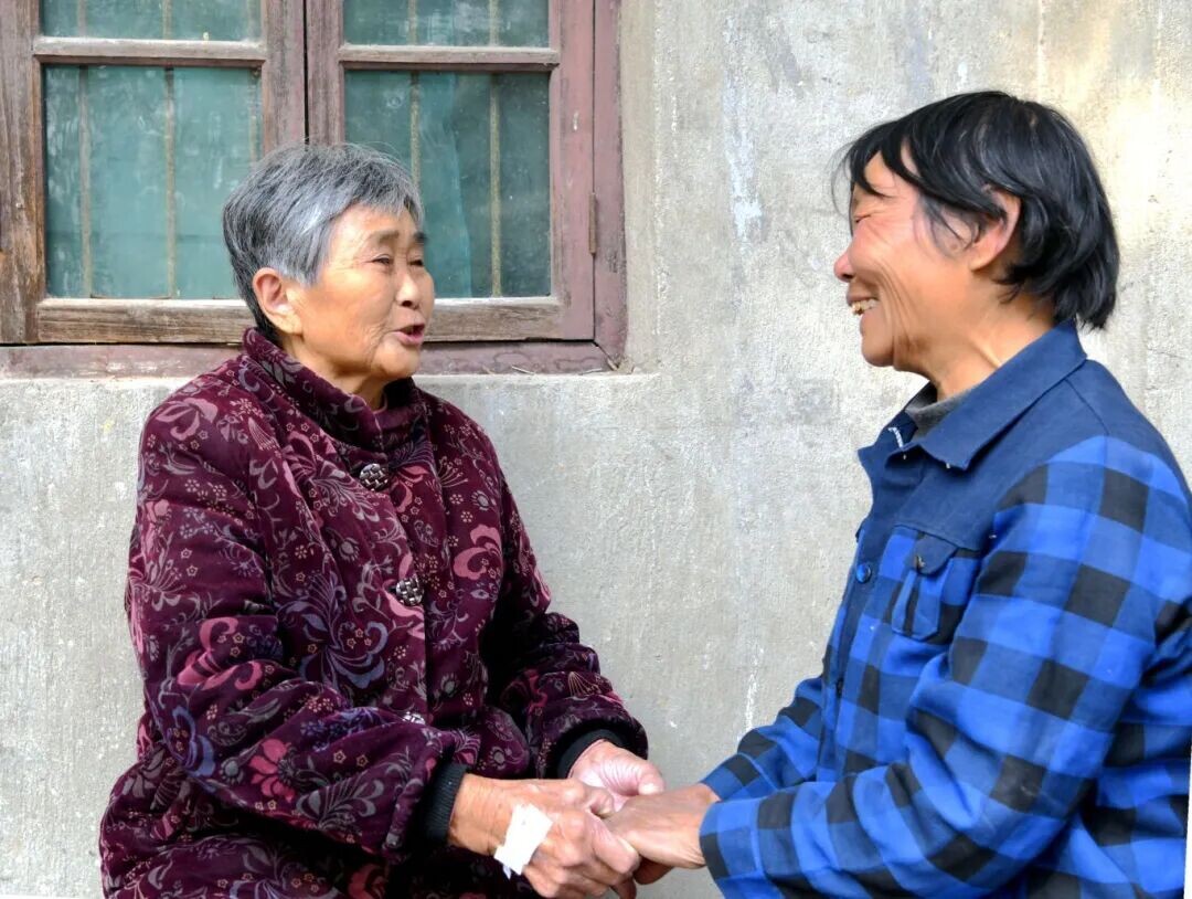 刚刚出院的陈秀芳(左),紧紧拉着登门看望她的唐秀英(右)的手连声道谢,表达感激之情。