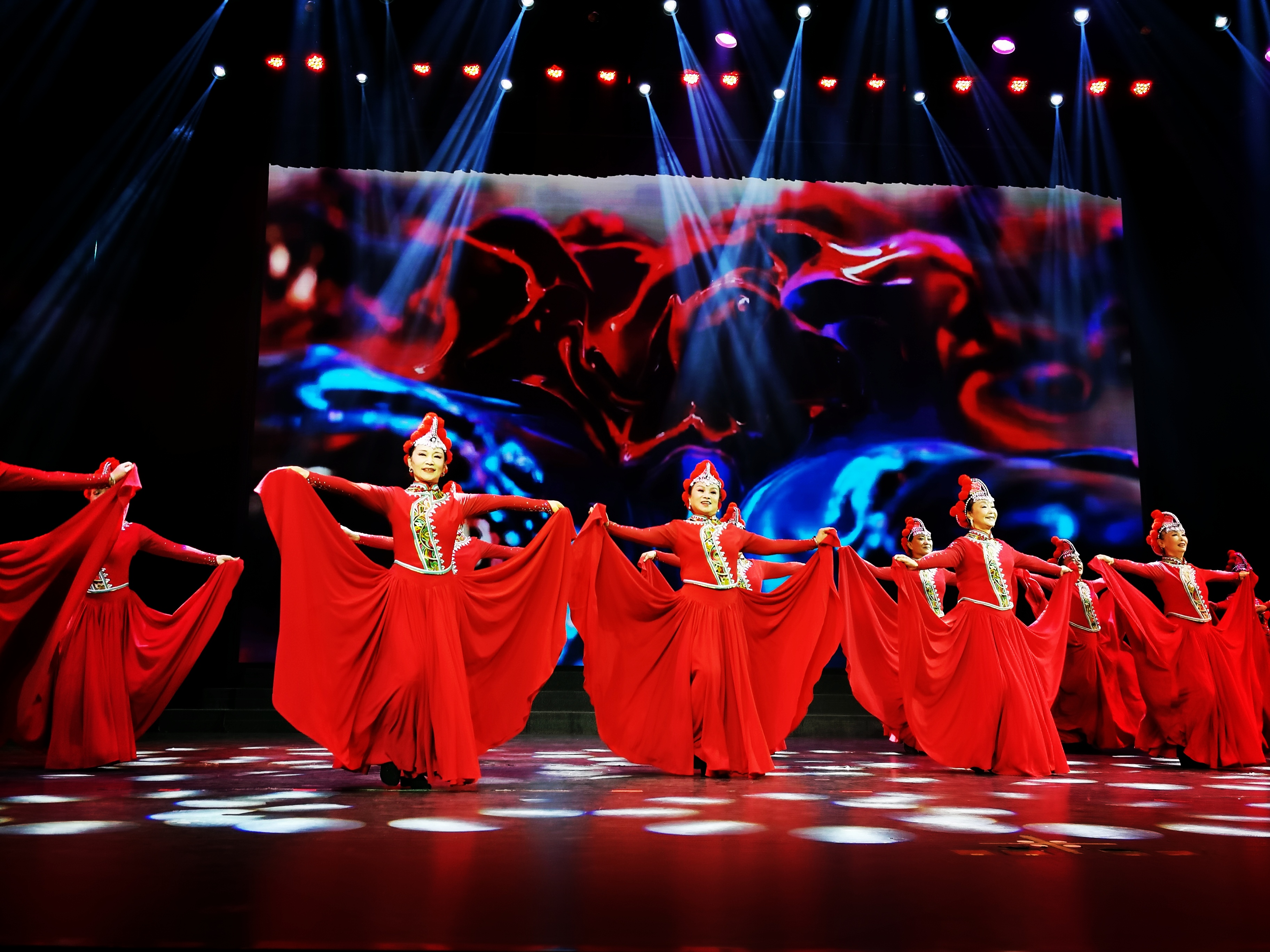 此外,省卫生健康委员会的舞蹈《梨花颂》舞姿优美、服饰华丽,恰似梨花吐芳;省文化和旅游厅的花灯《说唱新昆明》以轻快形式生动呈现春城新貌;云岭军休艺术二团的舞蹈《母亲是中华》深情表达对祖国的热爱;中国人民银行云南省分行的合唱《天路》歌声悠扬、气势磅礴,引人遐思。五华区军体中心的歌舞乐《阿佤人民唱新歌》将现场气氛推向高潮,演员们身着多彩民族服饰,以热情歌舞歌颂党和祖国,传递出民族团结、生活美满的喜悦。最后,全场齐唱《在灿烂阳光下》,共同展望美好明天。