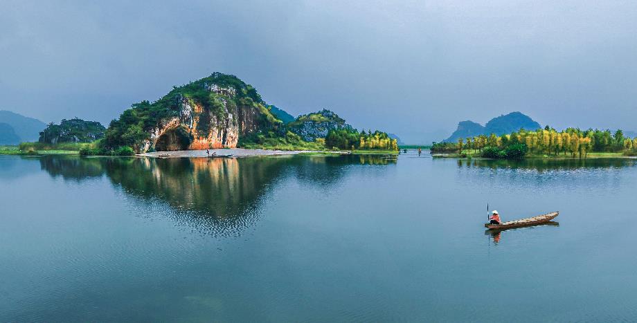 晨雾轻笼普者黑,312座孤峰如玉螺浮水,54个湖泊如星罗棋布。