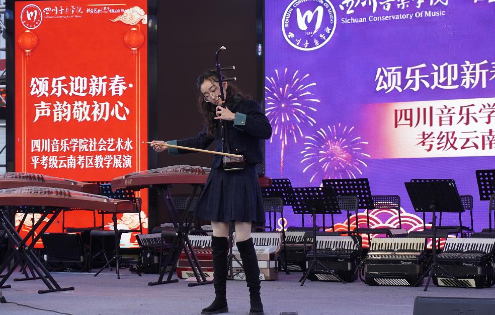 1月31日下午,在昆明云纺文创园“心舞台”,“颂乐迎新年·声韵敬初心”新年音乐会暨四川音乐学院社会艺术水平考级云南考区教学汇报展演举行,数百名学生家长和昆明居民现场观看了汇报演出。孩子们精彩的演出,博得了市民的阵阵掌声和赞叹。